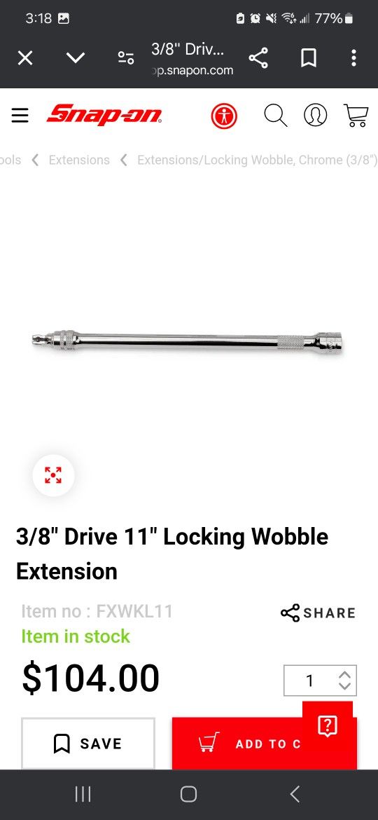 New snap-on 11 in. Locking wobble extension $60 firm. Check out all my other snap-on and matco tools for sale. Pickup in lemont