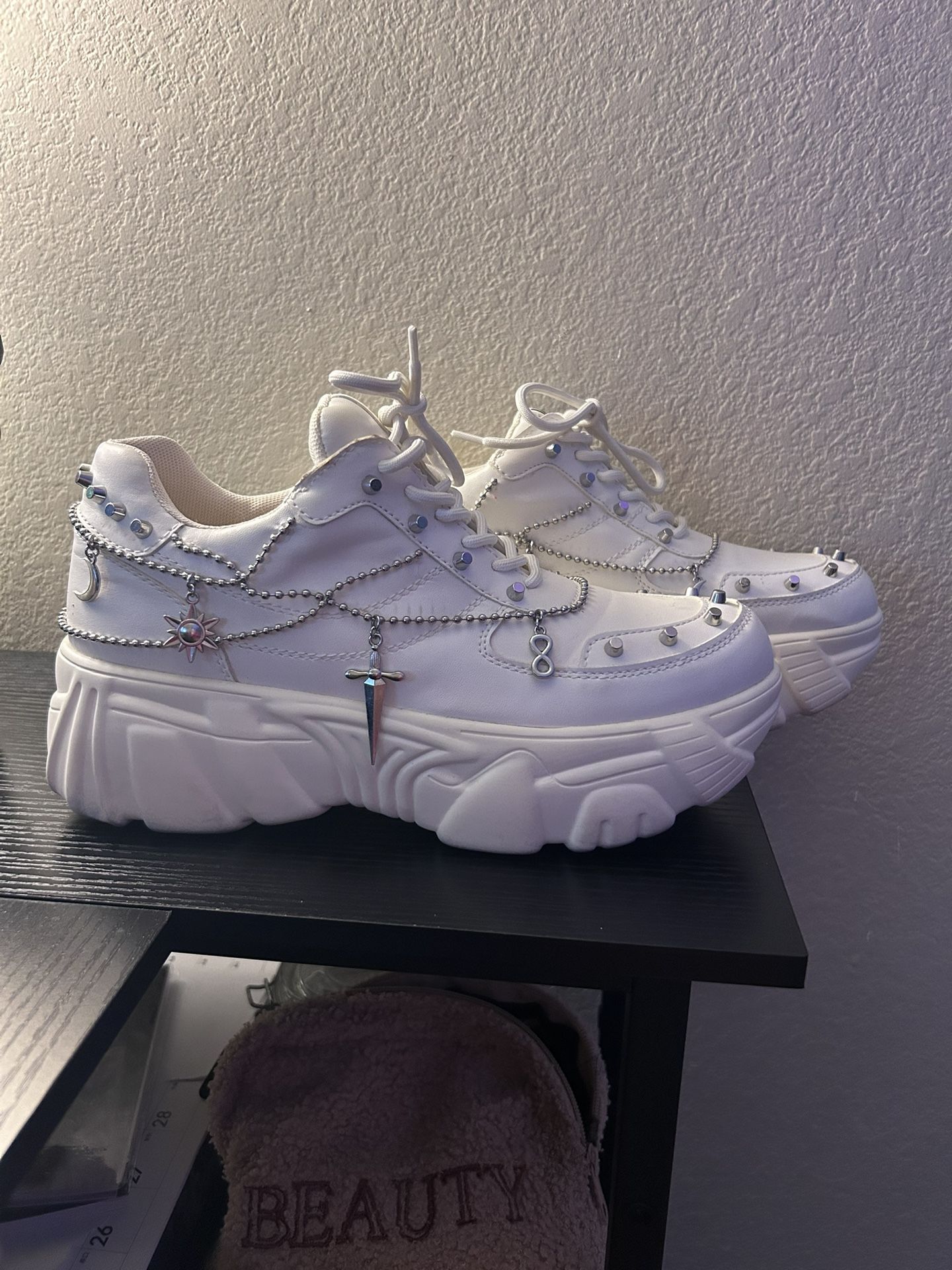 Brand: Koi Footwear The shoe is a size 10 US women’s, the shoe says 8. I’m not sure if that’s sizing from a diff county but they are in fact a size 10 women’s. Only worn twice