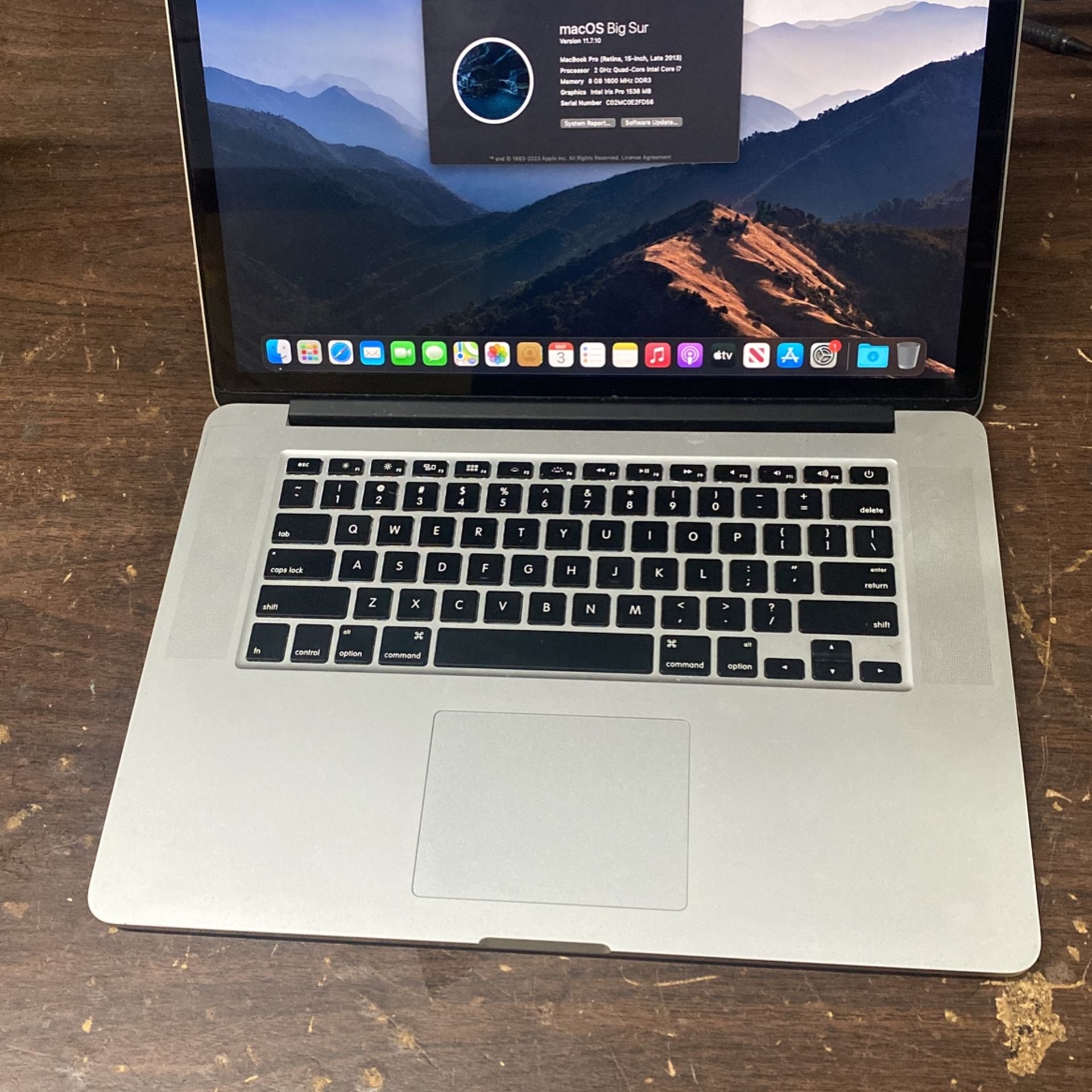 Late 2013 macbook pro Invludes ac / adapter Os big sur Visa / mastercard accepted I7 2.0 ghz