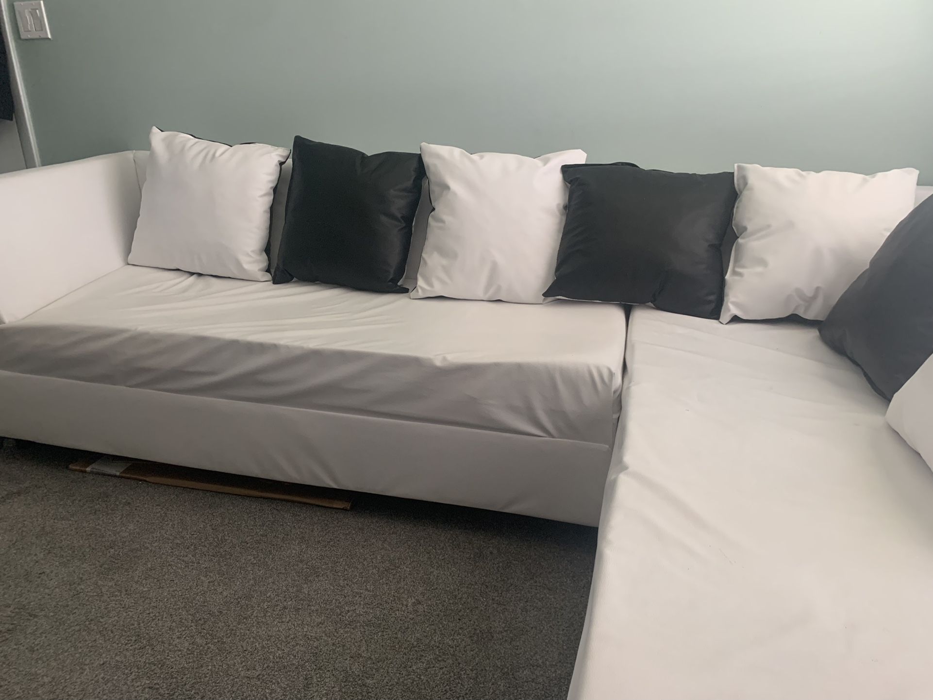 L Shape leather sofa/ couch. Bought it a year ago and used it a couple of times. It was a secondary sofa that was added in one of the Rooms. Original price $1399
