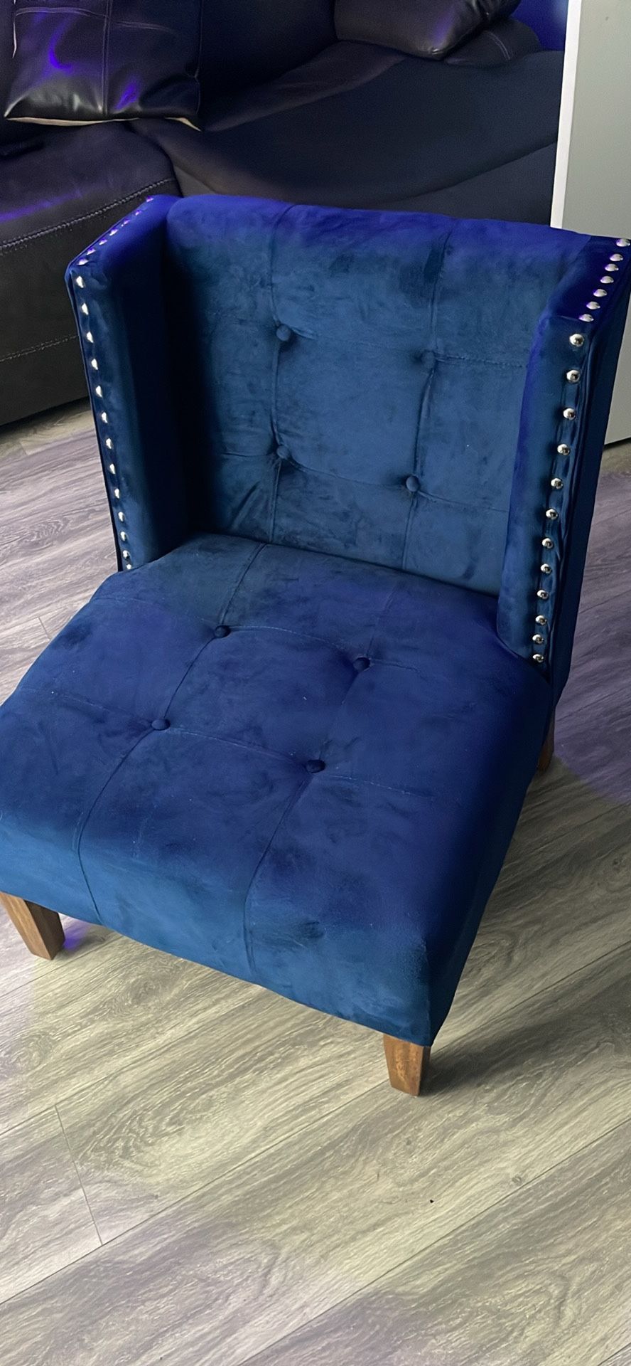 Royal Blue/ Grey Chairs for Sale with Studs. Like New No Damages, Excellent condition. Can be sold as a pair or individually excellent condition never used.