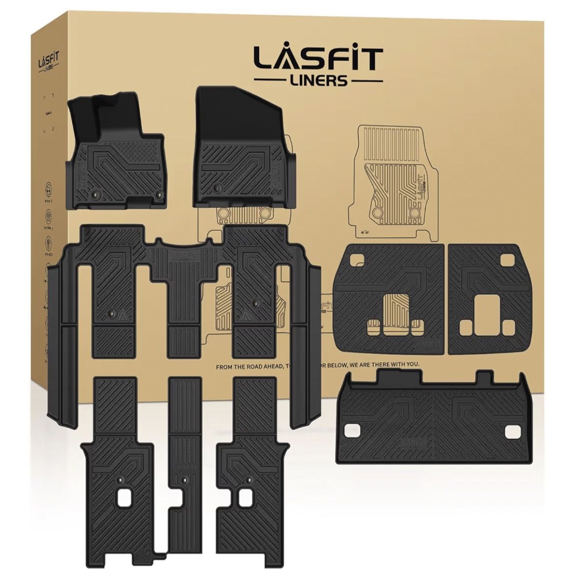 LASFIT Floor Mats & Backrest Mats & Cargo Mat for Kia Carnival Hybrid 2026 2025 (Only Fit Hybrid & 8 Seats), All Weather TPE Custom Fit Floor Liners Full Set Car Mats Trunk Mat Accessoires, Black
