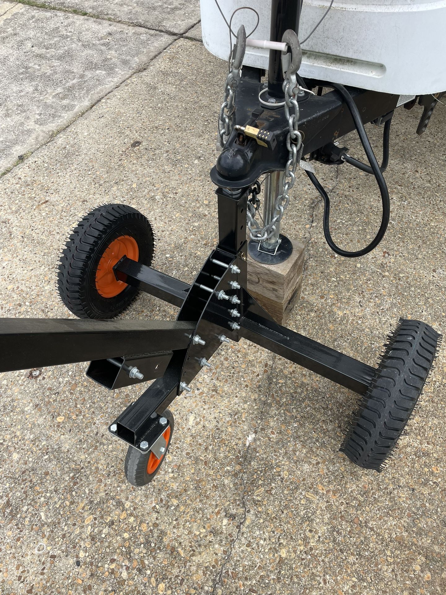 This trailer Dolly can lift the tongue weight of 1000 pounds and a trailer with the weight of 10,000 pounds. It’s super heavy duty. I just bought it for $200. Letting it go for $75. Price is firm.