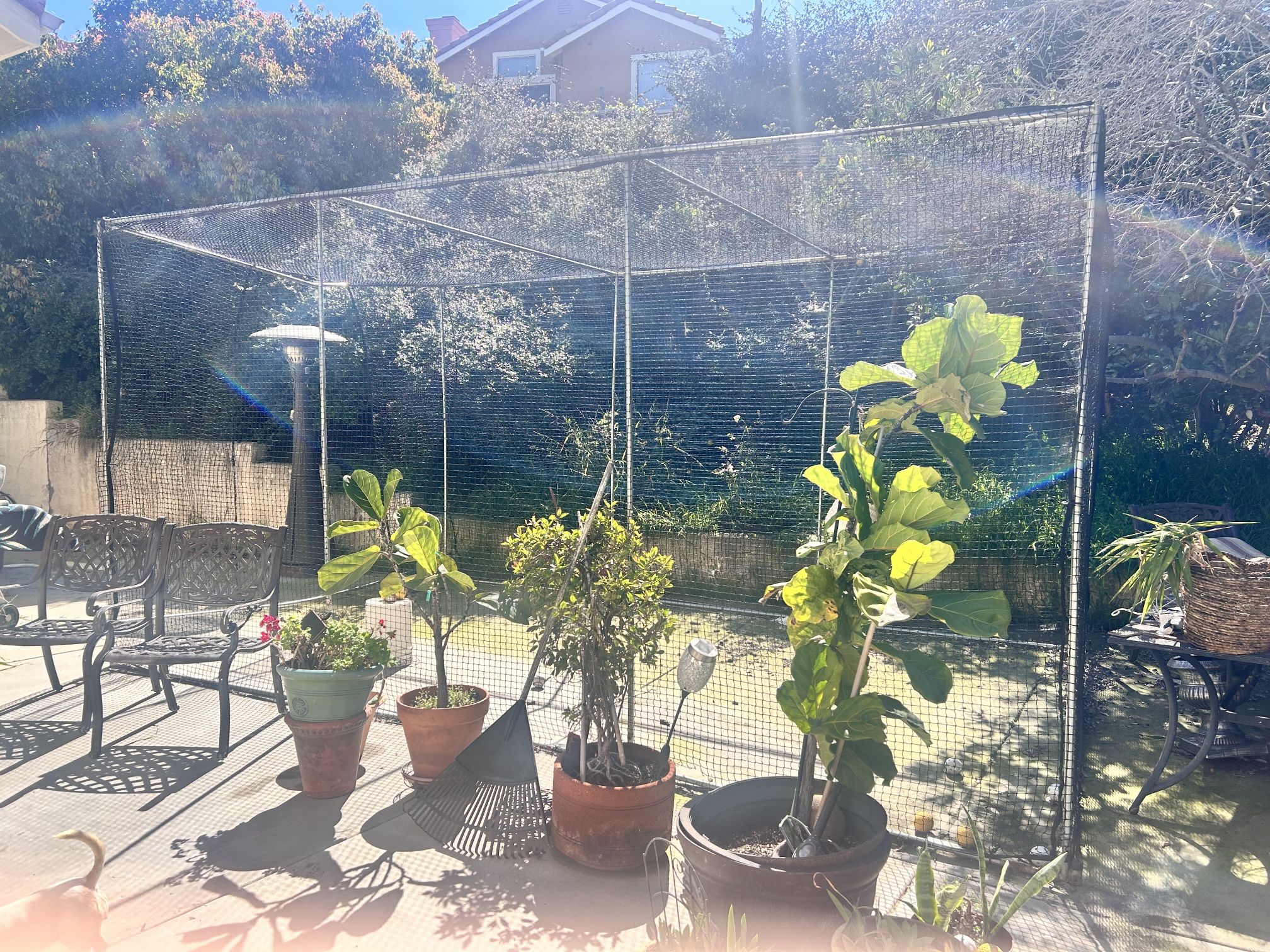 200 dollars for the batting cage minimal rust at the front of the batting cage. It does have a hole for the pitching machine does come with wheels to be moved and I do ask if you would like this batting cage that when you come to pick it up take it apart and put it back together when you’re ready to use it again