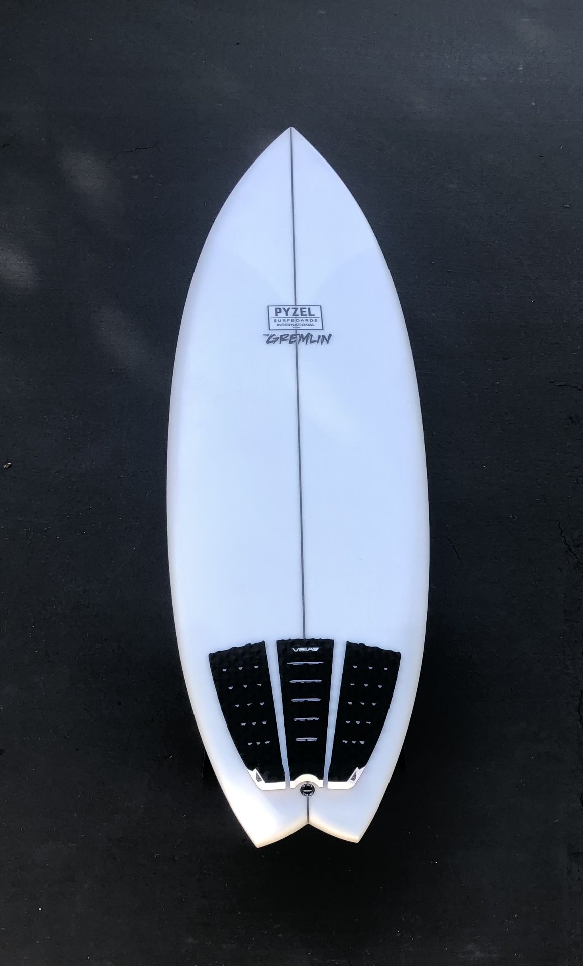 6’8” PYZEL GREMLIN SURFBOARD - 10 OUT OF 10... CUSTOM SHAPED!! JUST LIKE NEW… USED FOR APPROXIMATELY 2 HRS PADDLING BOARD SELLS WITH TAX PAD OVER $1000 6’8” x 22” x 3.06” VOLUME 50.06L NOTE: FINS ARE NOT INCLUDED BUT ADDED FOR $75 THE GREMLIN If you love the feel of your Ghost and Phantom, but want a shorter, chunkier board for smaller surf the Gremlin is the board you'll want! The Gremlin was made to get you excited about surfing on the days that are less-than-epic, and also to give you a taste of FunFormance that will get you fired up in any kind of surf. The wider outline is complimented by a low entry rocker for easy speed and glide through the weakest, slowest sections, but we left curve through the tail rocker to keep it performance oriented and add to maneuverability. The bottom runs from single to double concave, with a nice bit of Vee running of the tail. This makes it a board that paddles easy, gets up and goes fast, and still has a snappy, drive-y, high-performance feel to get you the most out of every wave you catch. Higher level surfers will want to ride this board as much as 4-6 inches below their height (and find that it actually has a full on high-performance side to it). A more intermediate level surfer will want to stick to something around their height. It's also a great transitional board for the more beginner surfer who is ready to take the step away from their longboard (or whatever they have been riding) to a more FUNformance design!