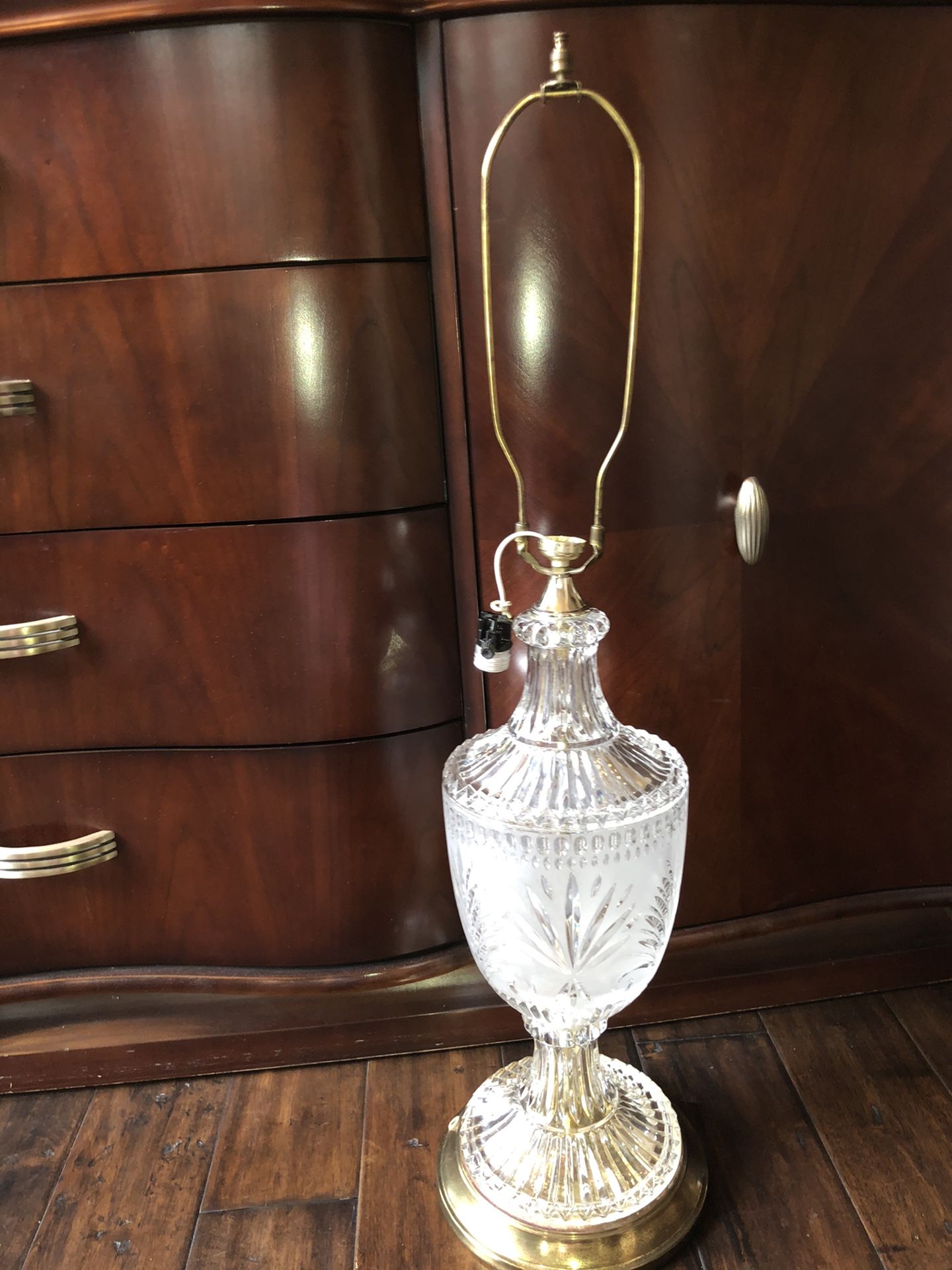 Antique lamp with out wiring , needs to be wired. Does not come with lampshade. Length with lampshade holder, 37 inches. Link not including lampshade holder 23 inches. The width of the base 9 inches across.
