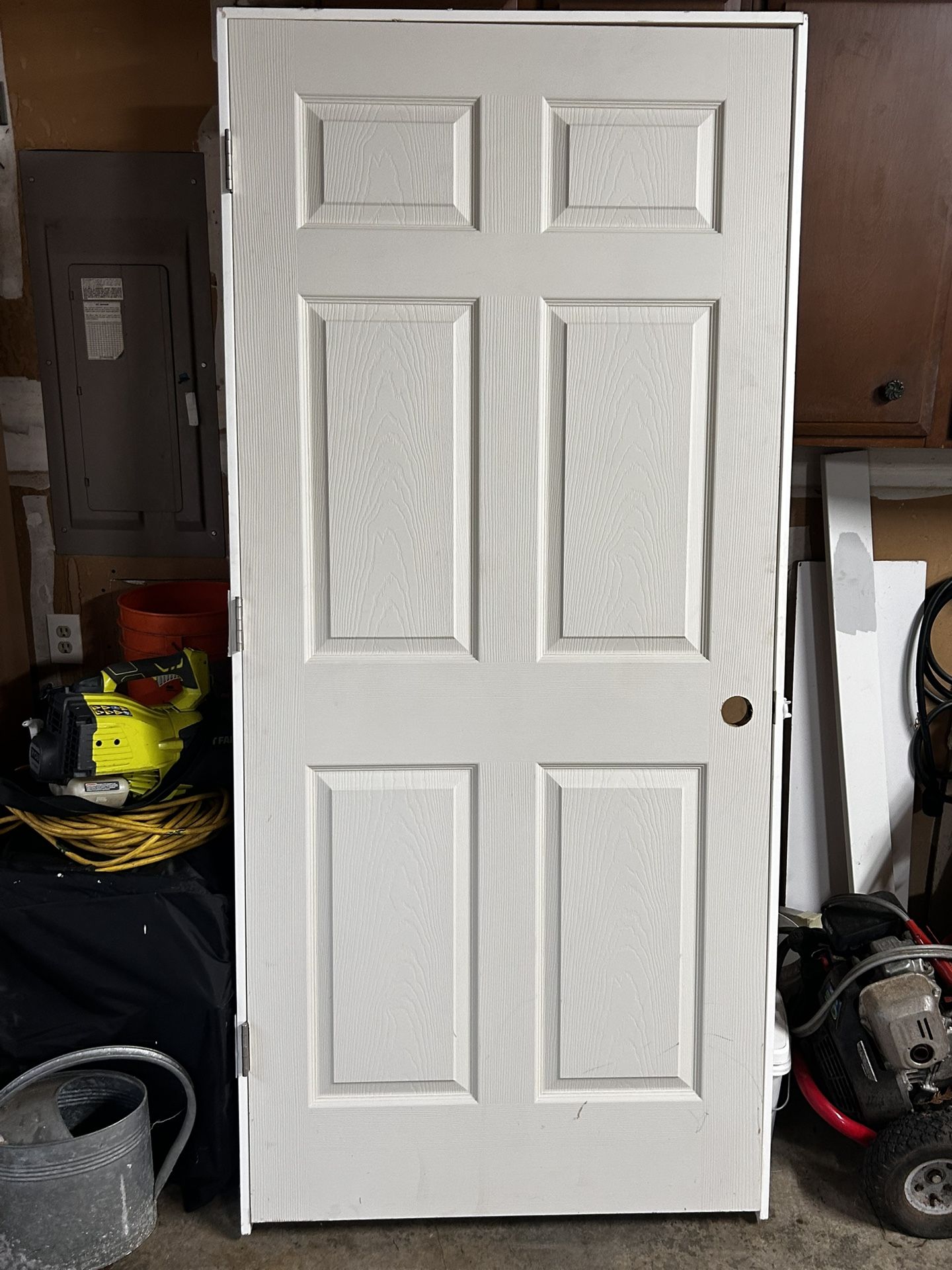 36x80 primed hollow core 6 panel door. small scratches ( see photo) should be easy to hide when painted