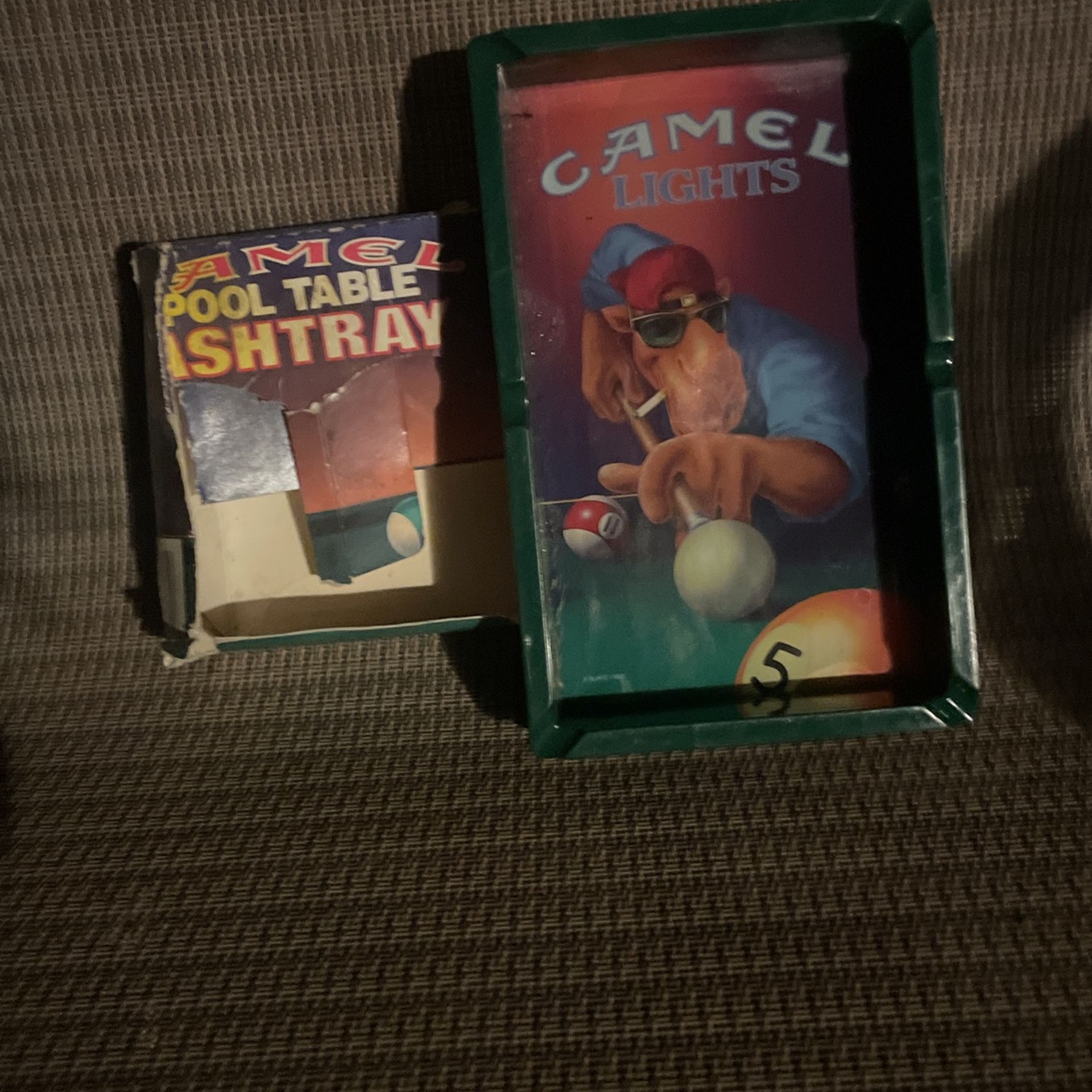 This is a plastic Camel Pool Player Ashtray. It has been in storage for 32 year. It has never been used. Asking $15.00. My price is firm!