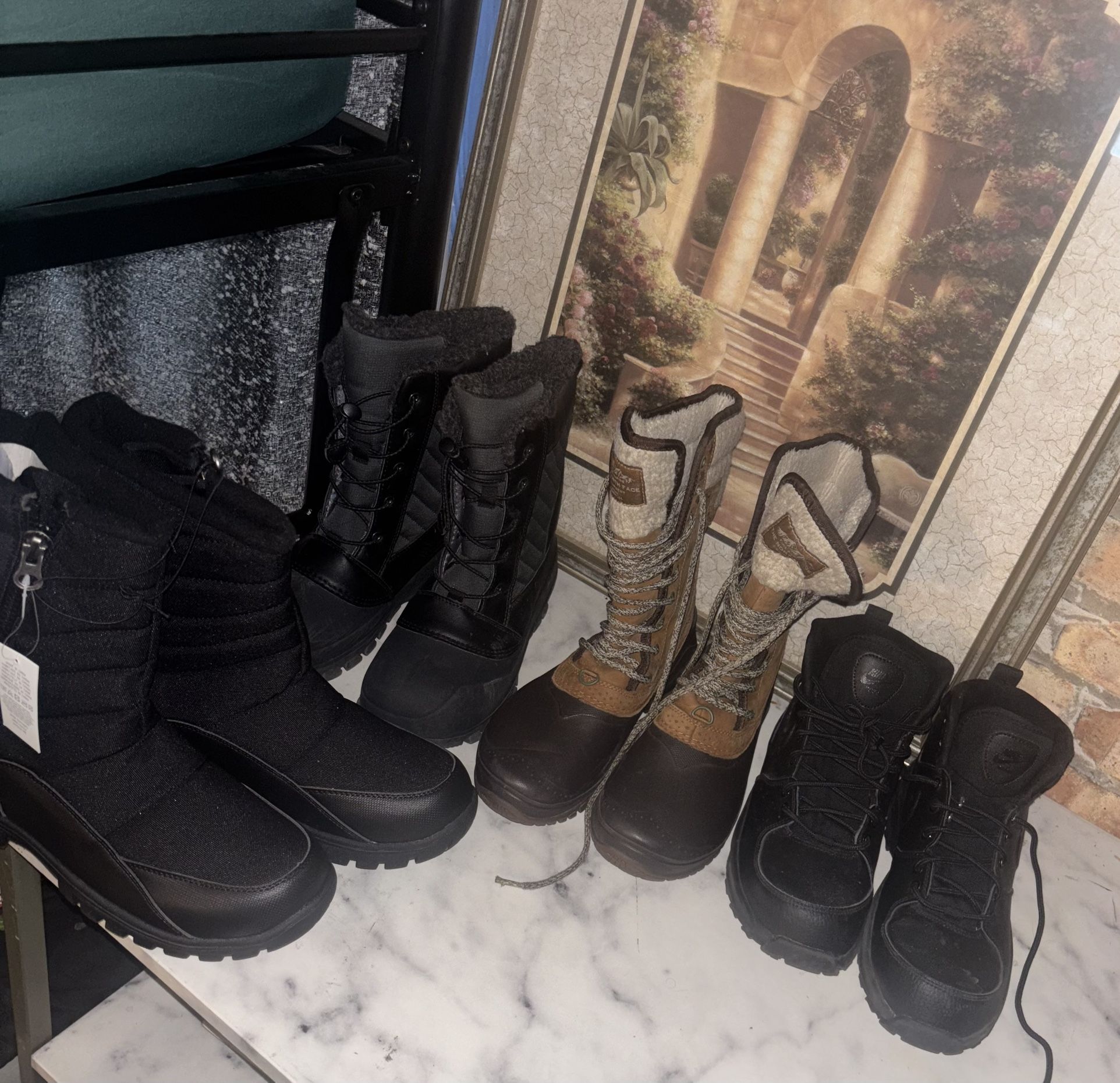 4 pairs of winter boots. Insulated, rugged soles, good condition. Great for snow, work, or resale. Selling as a bundle. Cash Pickup in Cicero area