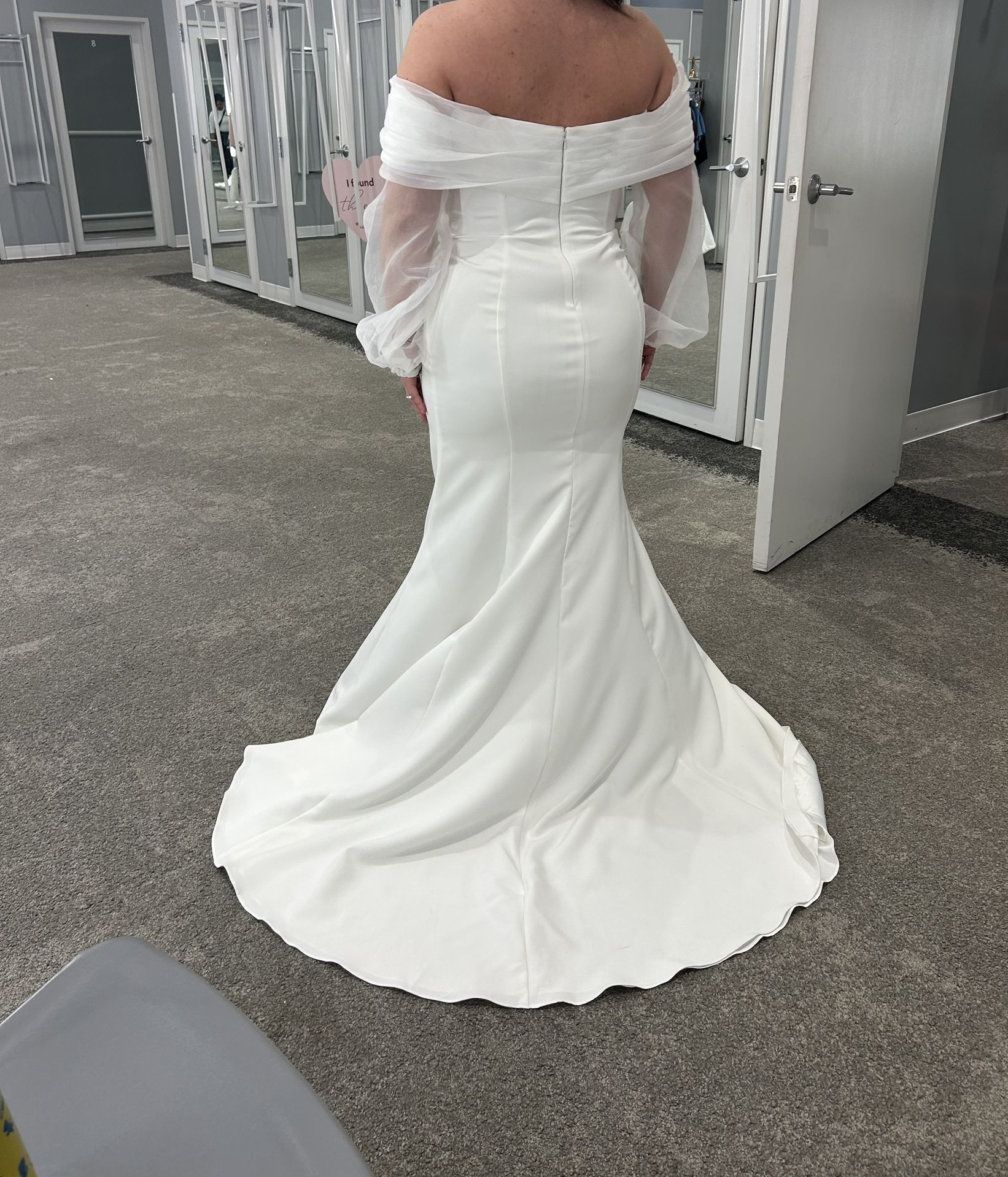 I am selling my wedding dress due to some last minute changes for my wedding. I need a less formal dress then the one I have already bought. It was only worn the day I tried it on and bought it, still in its bag and everything. For reference, I am 5’2-5’3 and weigh about 165lbs. The dress was slightly long on me but when I tried it on with heels at the store, it was great. Wedding dress will include the privacy bag.