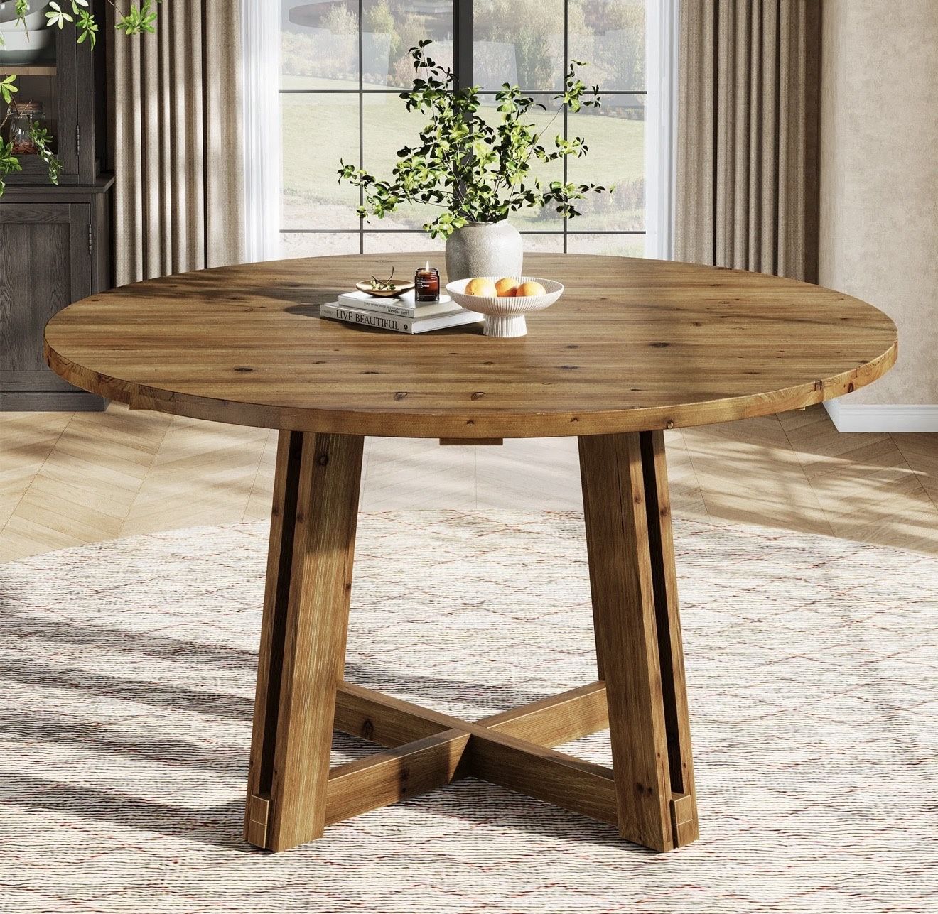 YC0104 47" Round Dining Table, Solid Wood Kitchen Table with Sturdy Legs for 4-6
