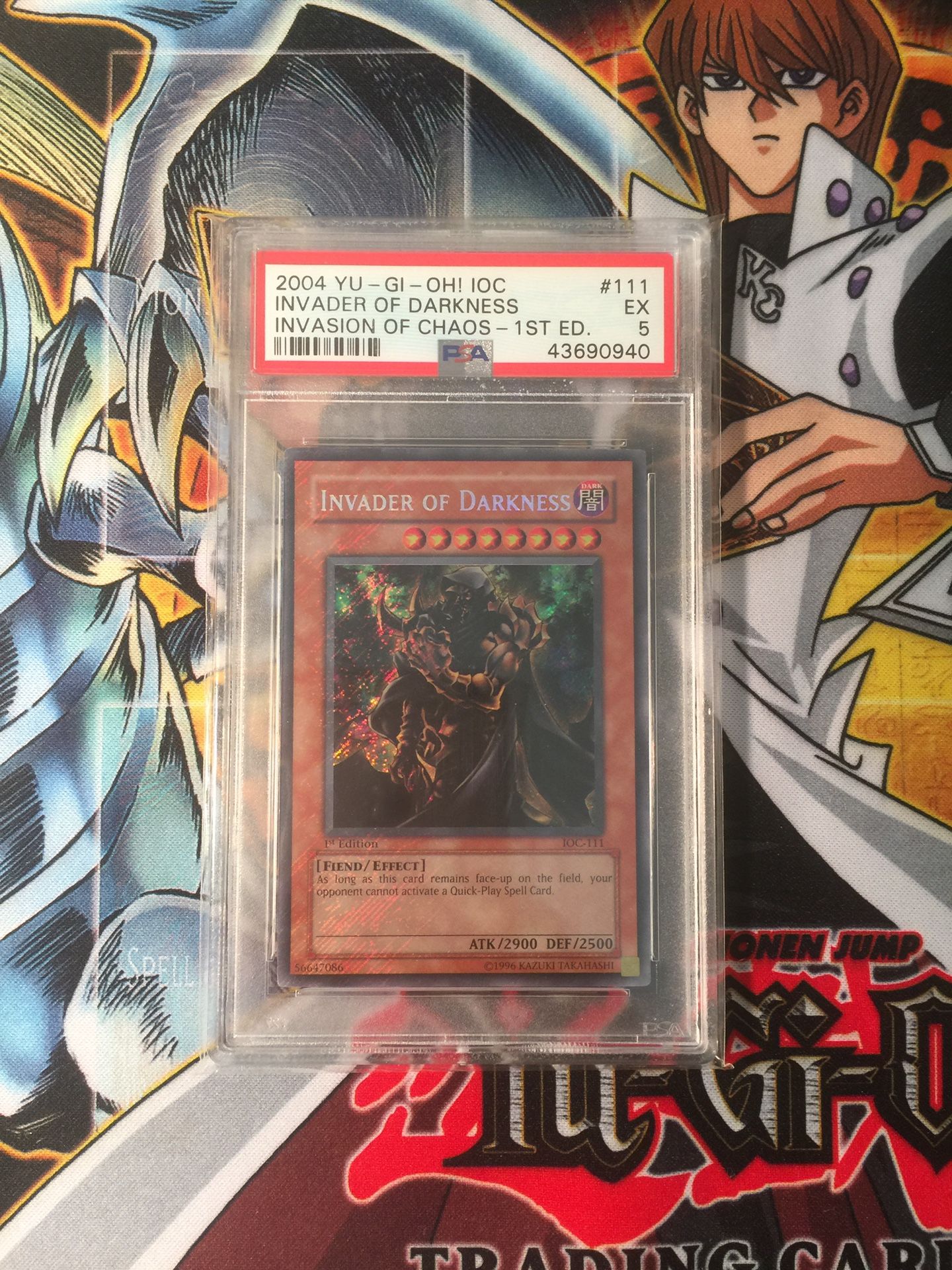 Yugioh psa 5 invader of darkness ioc. Huge trading card collection sales. Lots of cards available. Raw and graded. Yugioh & Pokemon.