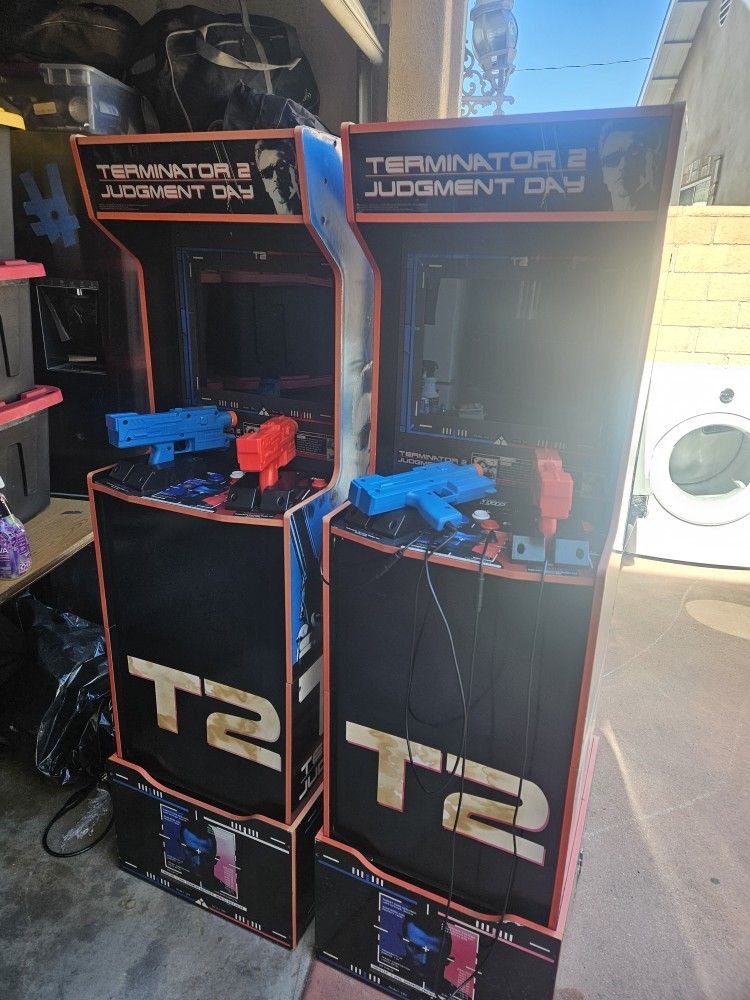 Arcade1up Terminator 2 Cabinets 1 works with no issues. 1 needs pcm Both were left out in the rain and have water Damage. Will definitely still Hold up for game play, no problem, only cosmetics issue if anything. 350 for both or 260 for working one alone. 120 for non working one alone. Worth more in parts. If you need parts let me know what you need, might consider a part out