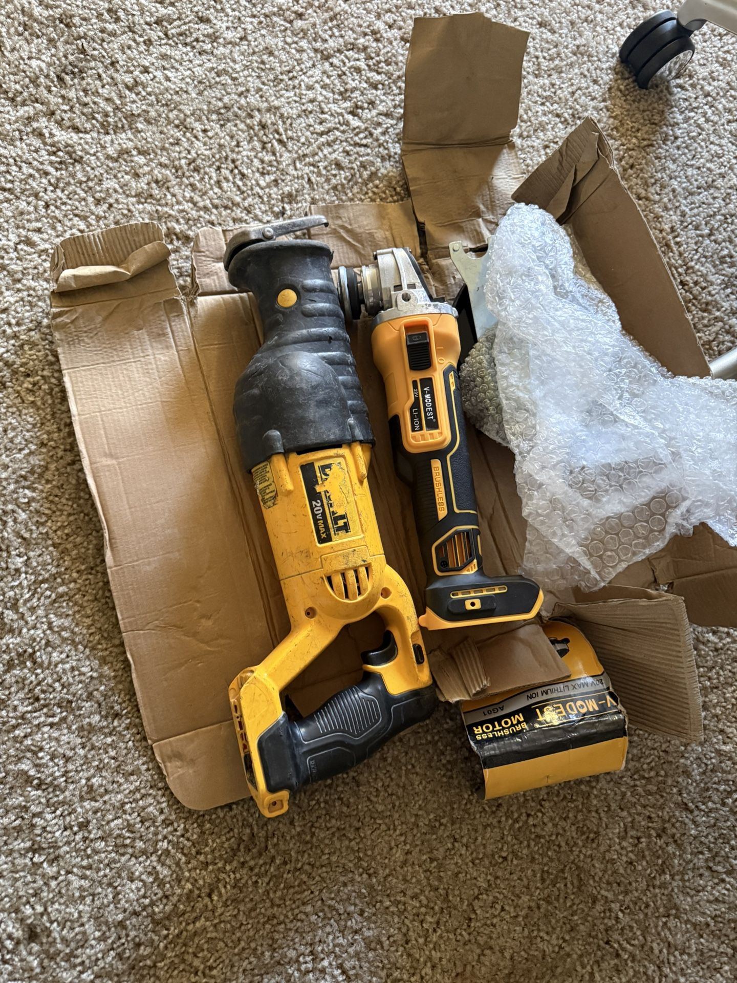 Selling sawzall with grinder The grinder is an off brand dewalt grinder but works perfectly I bough it off Amazon and when it got here I realized it wasn’t dewalt branded lol