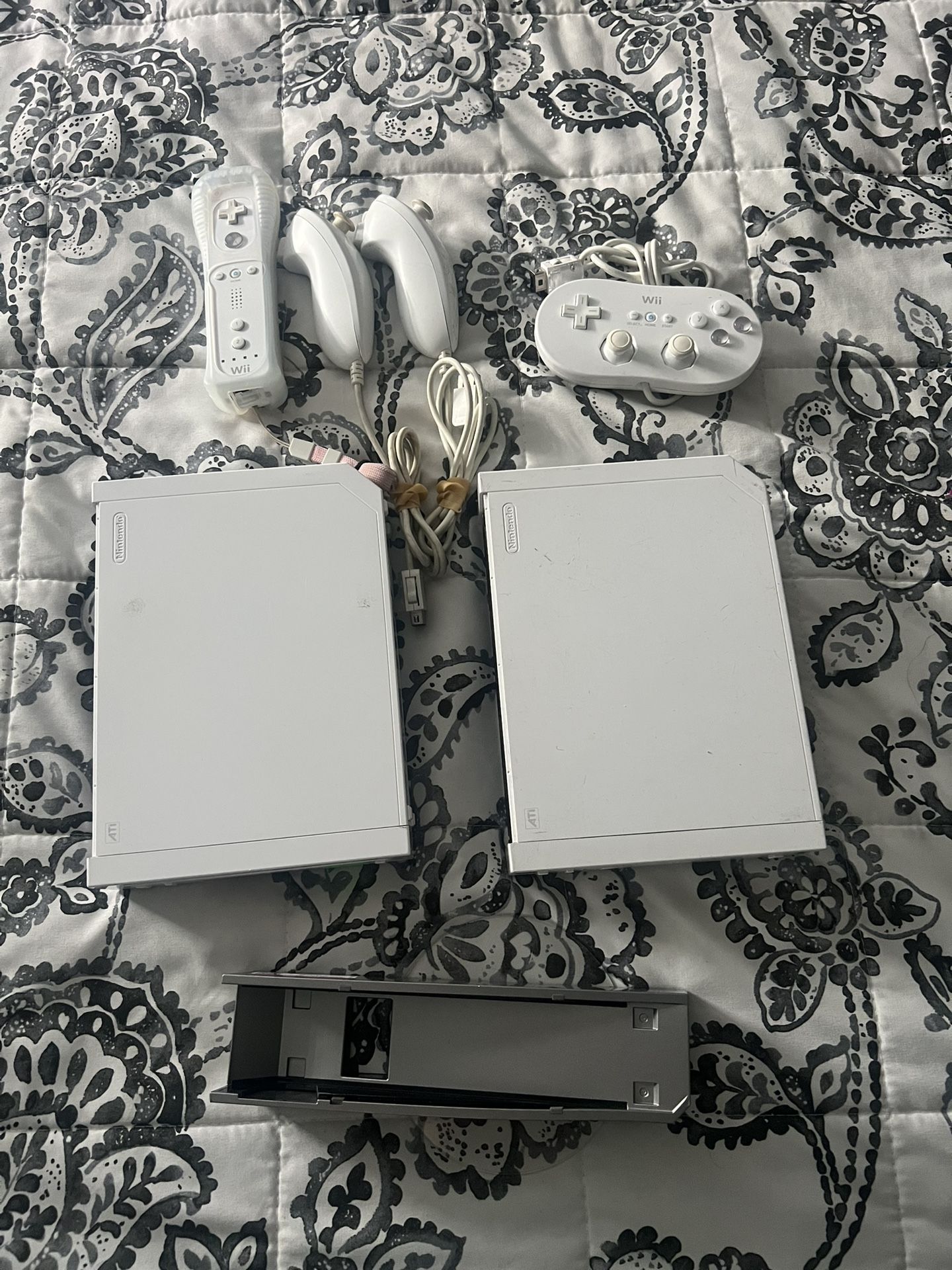 Wii Console 1 • Doesn’t power on fully (red light shows, likely an easy fix) Wii Console 2 • Fully works • Mario 64 installed • Disc drive doesn’t work Extras • 2 Nunchucks (working perfectly) • 1 Wii Remote (for parts) • Wii Stand & Classic Control Optional Add-On • I can mod the working Wii and load up to 100 games – just $1 per game Message me for prices individual prices
