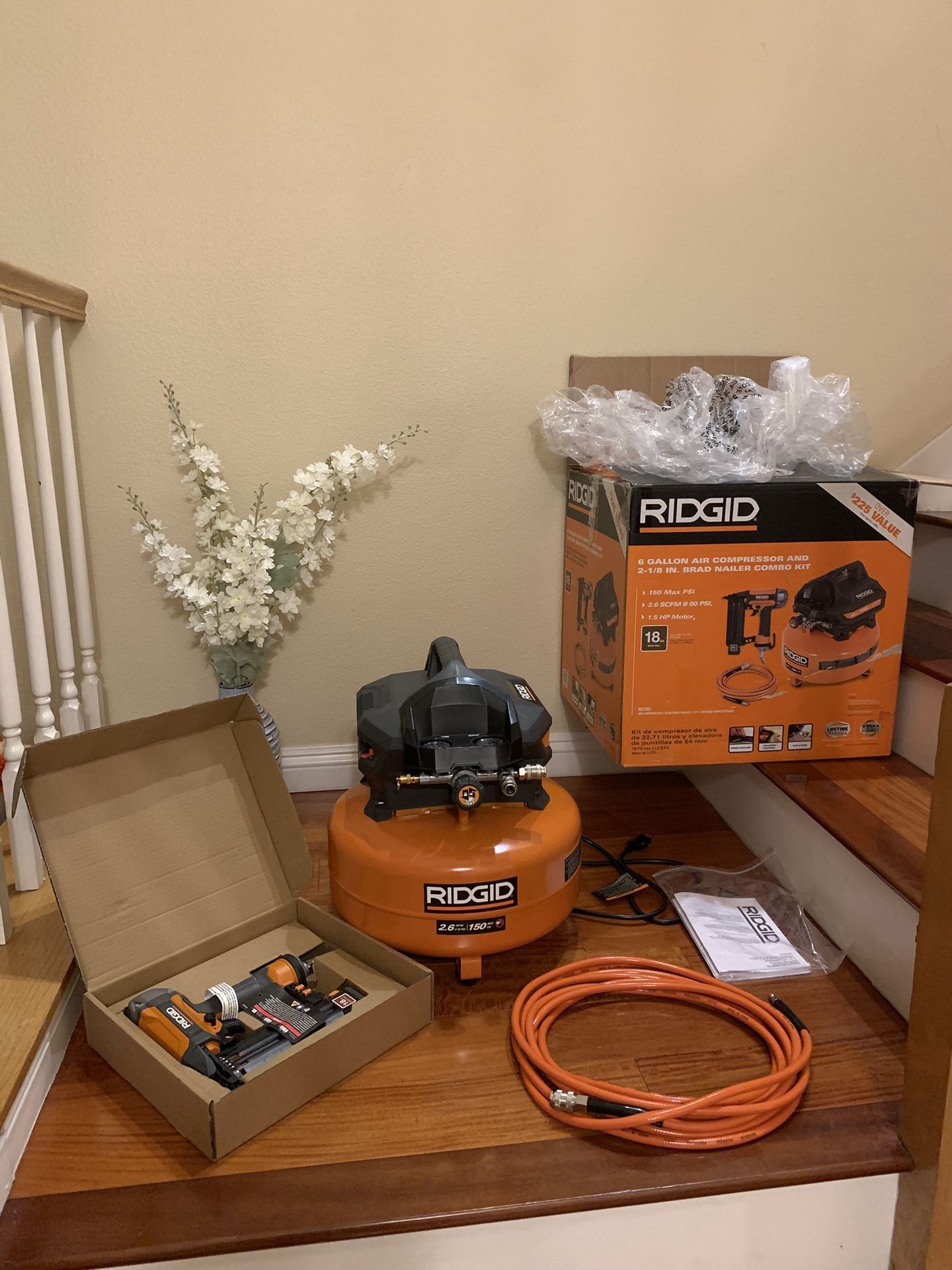 Rigid 6 Gallon Air Compressor And Brad Nailer Kit