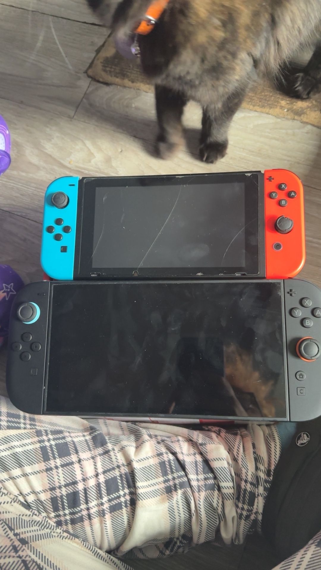 Switch for sale. Red+Blue Joy Con. Yellow + Purple Joy Con. Docking station and all accessories. Pro controller. Wheels (Red+ Blue). Carrying Case. Charging port for up to 4 remote controllers. Make me an offer!