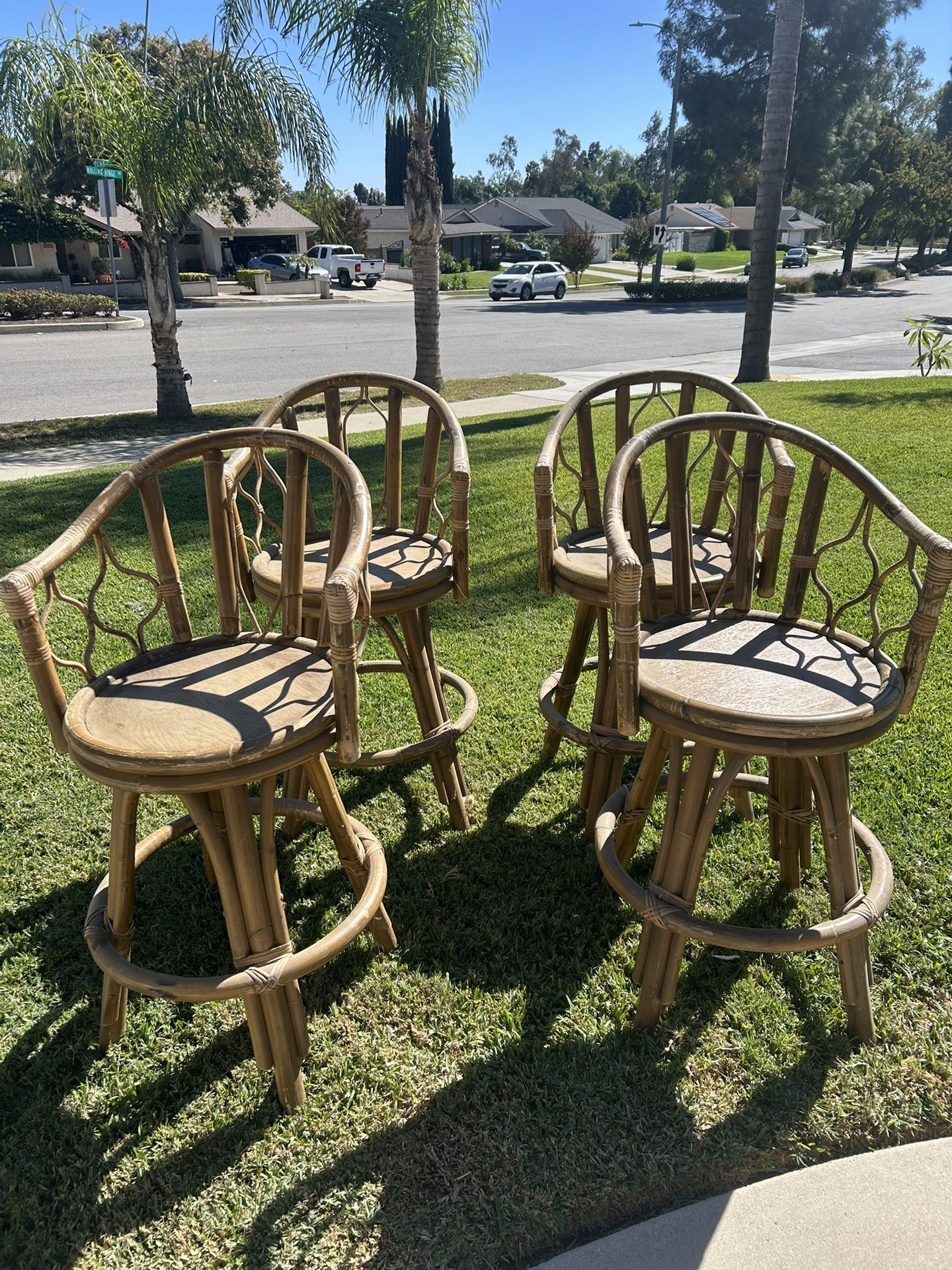 For sale: Gently used set of 4 rattan bar stools. Good condition, just needs a good cleaning. Approx 41 inches tall Approx 24 inches from floor to base of seat $140 cash only OBO Nice and heavy. Very sturdy PICK UP ONLY. MUST HAVE TRUCK