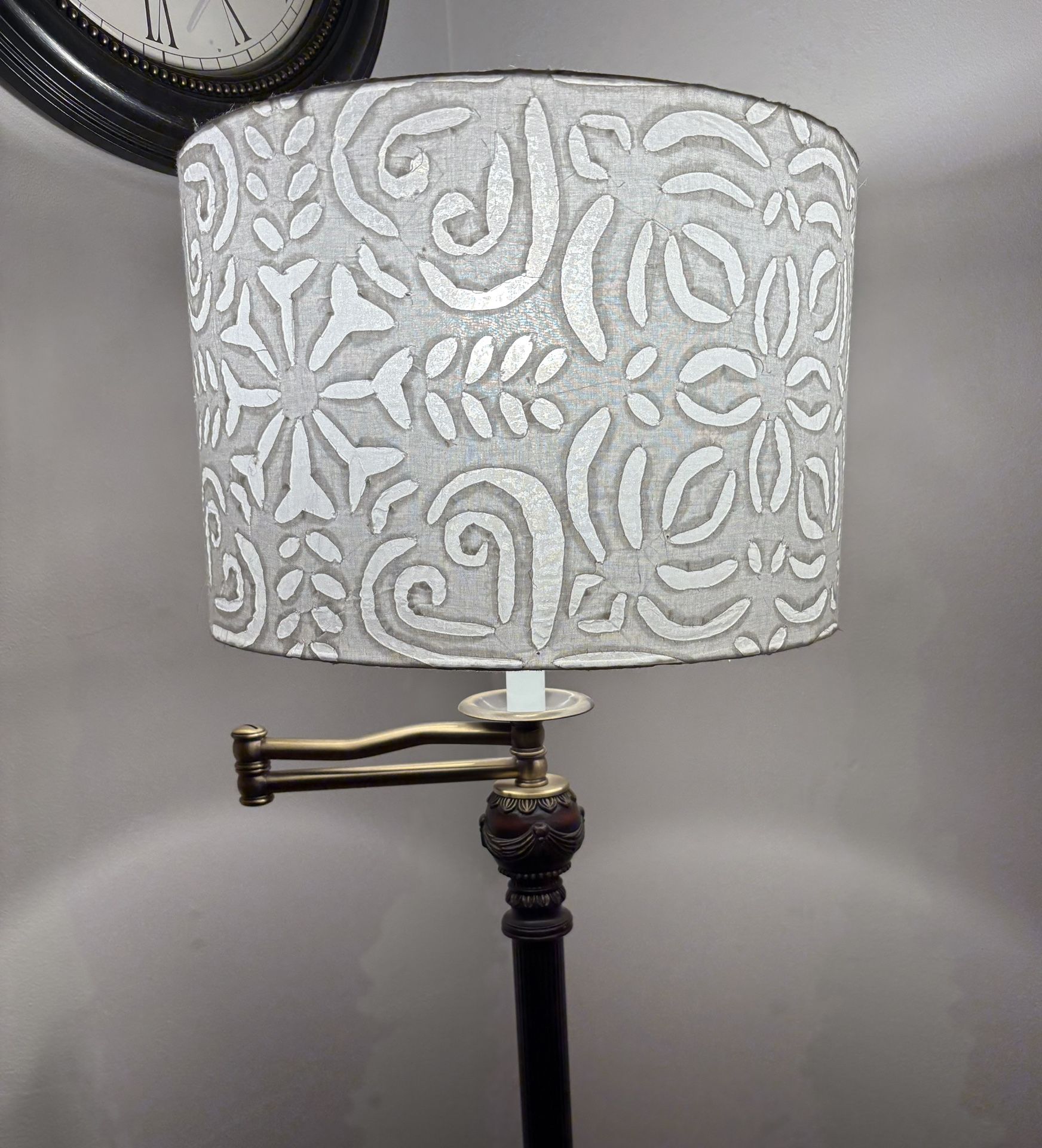 60” height, swivel brass arm (great reading lamp over a chair), ornate & sturdy pole and base
