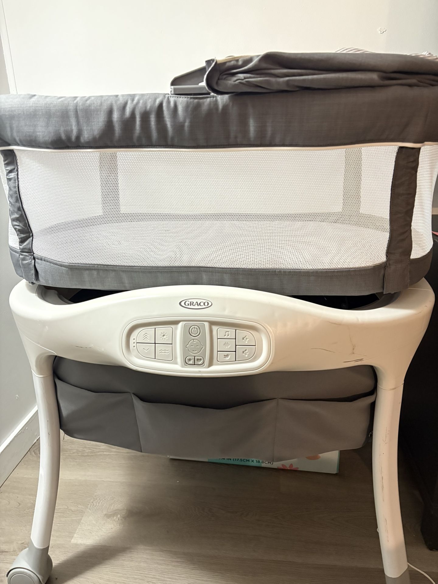 Nice bassinet for baby. It works very well. I sell because my baby is bigger now and I don’t use it very much. It has a microphone to hear baby's cries, respond by automatically adjusting the bassinet's settings to help soothe back to sleep. 3speeds, 2 vibration, white noise, 10 songs, and 10 soothing sounds, combination of settings to help calm baby. Additionally, the cozy bassinet has airy mesh sides for both breathability and visibility, blocks light with the reversible canopy. The washable mattress & integrated storage for baby's essentials offer easy convenience. wheels for easy maneuverability in the home. $100 OBO. I live in Loves Park. Thank you.