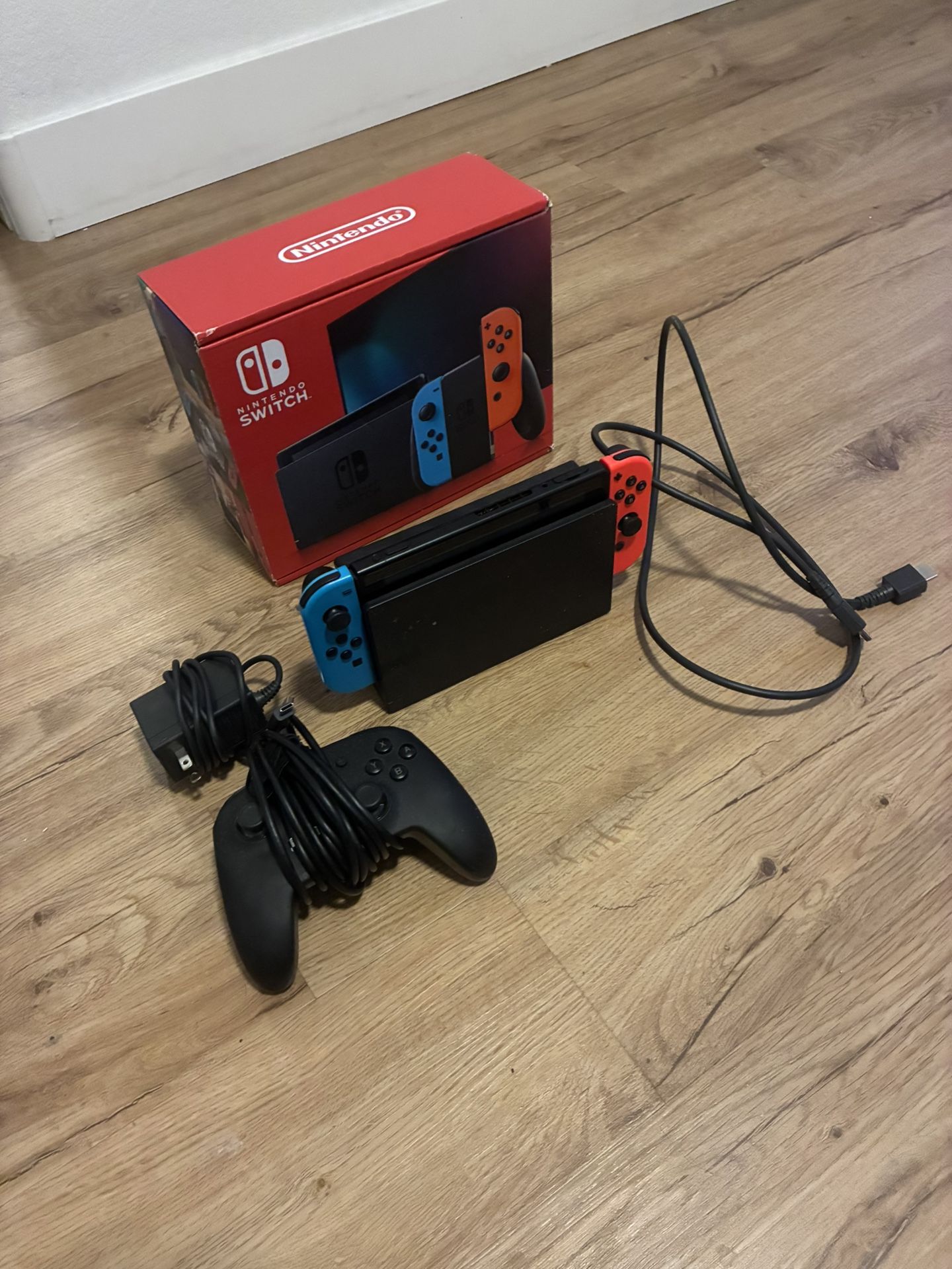 Switch with original box, has controller, hdmi cord, and Pokémon brilliant diamond. I have a Nintendo account with digital Mario kart, Pokémon scarlet, and Pokémon ZA legends I would sell as well you just change the email address to yours