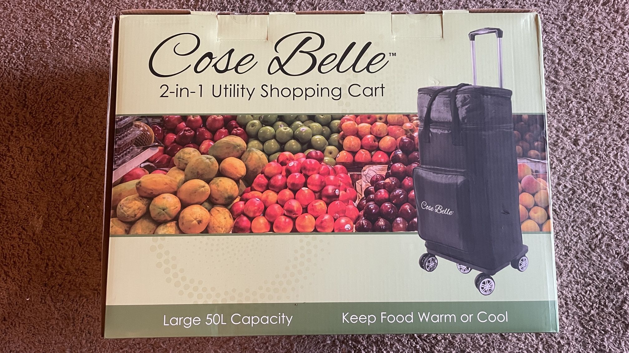 NEW Cose Belle 2 in 1 Large 50L Shopping Cart w/ Wheels Retractable Handle black