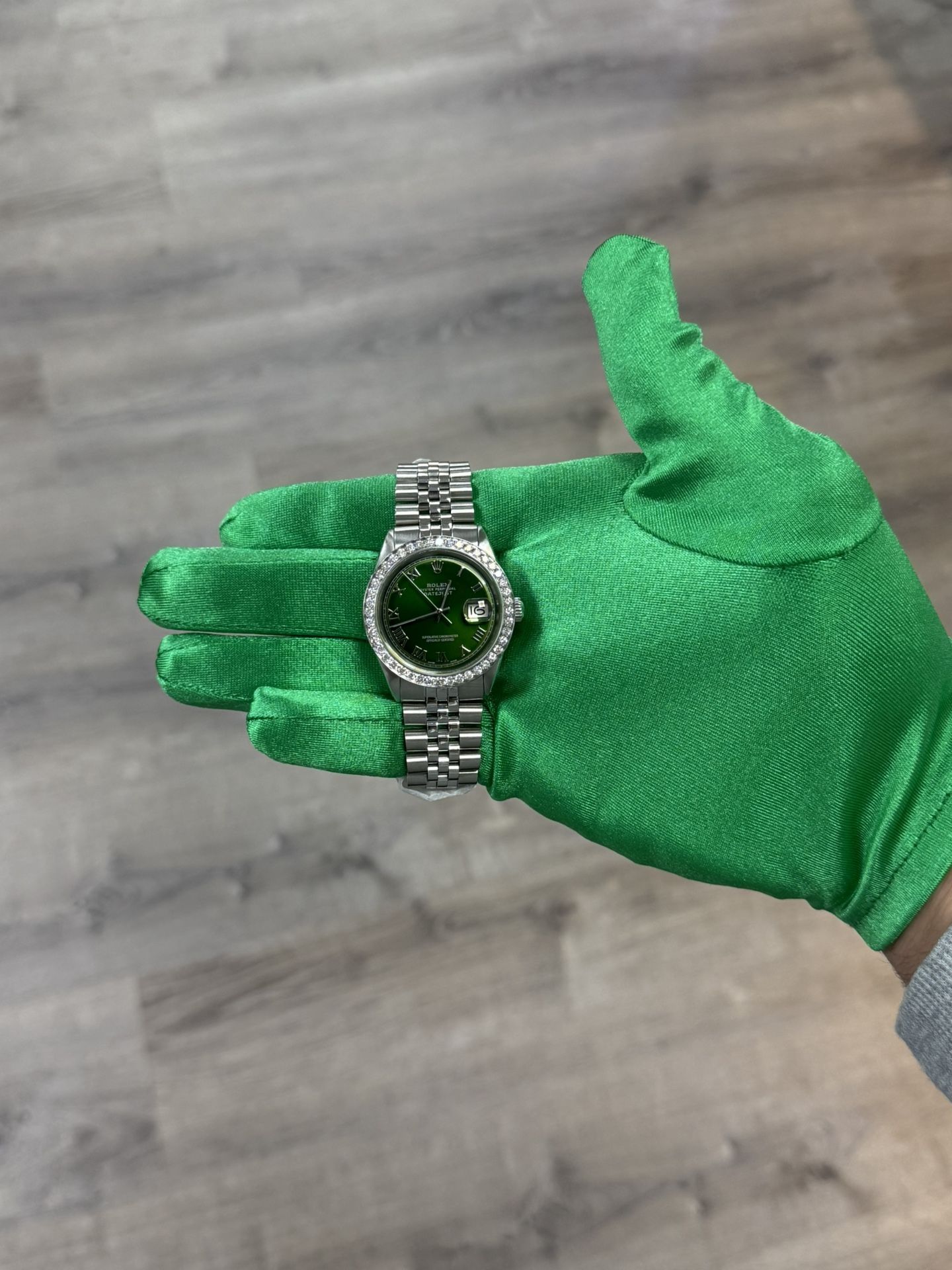 36mm Stainless steel Diamond bezel natural diamonds With box Am green roman diamond dial