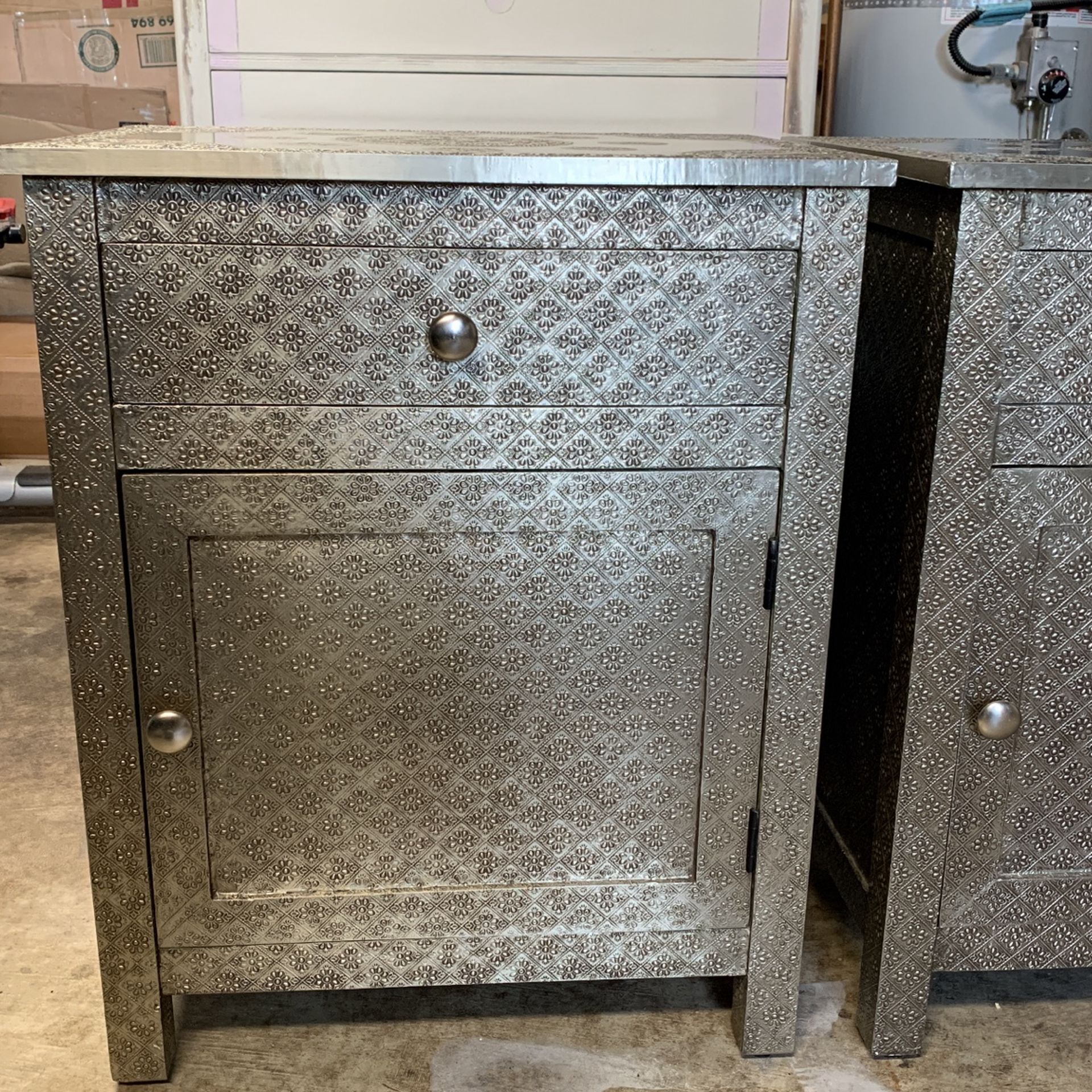 Pair Of Embossed Metal Nightstands/End Tables