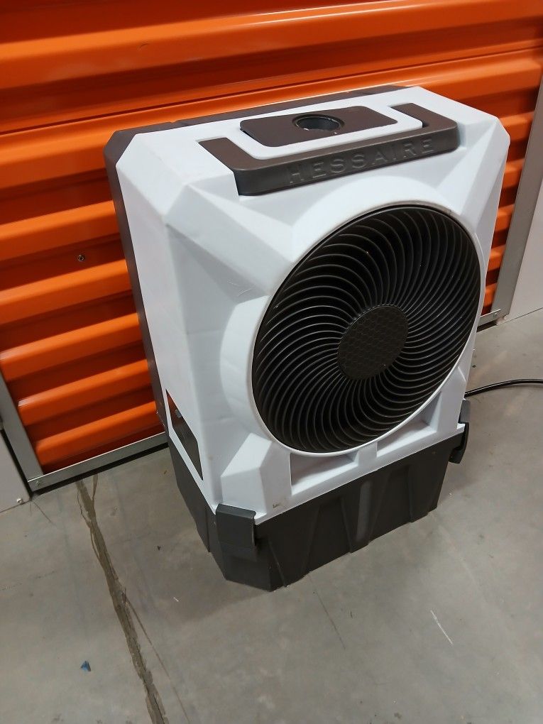 Selling my AC unit, it's small enough to carry and has a handle so you can take it wherever you need to use it, it does take water the water goes in the bottom of it there's a spout on the side that you can pour water into or the whole top opens up from the bottom, there's also a area on the bottom where you can see the water level, it does plug into regular outlet, the fan tilts up and down, and it has high and low ac, high and low fan, and just the pump can be turned on also. Moves a lot of air really handy little unit