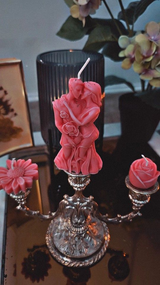 Romantic Rose Couple Candle Set – Hand Dressed - Floral