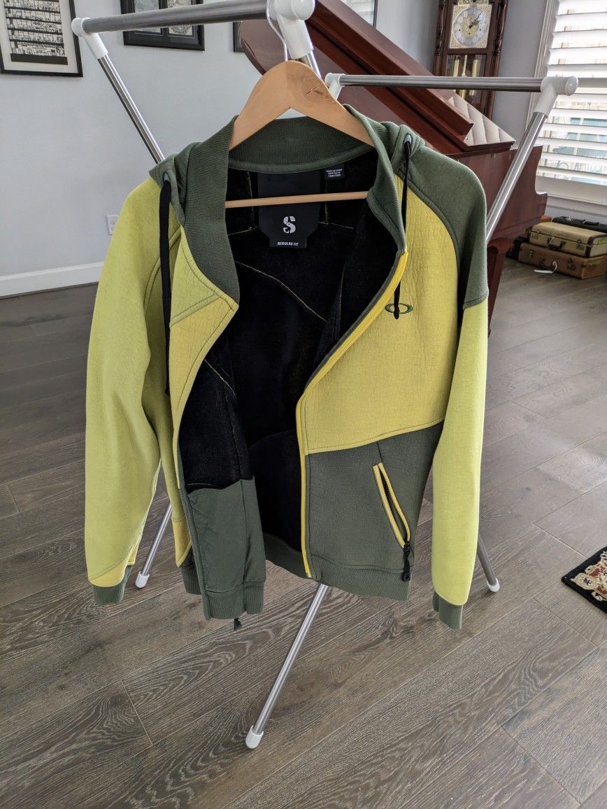 Men's small size Oakley surfers hoodie. Fits as women's med size. Super warm lined hoodie with snug zippered front, and collar. Not quite waterproof, but very windproof. Great condition. Non smoking home. They don't make them like this anymore.