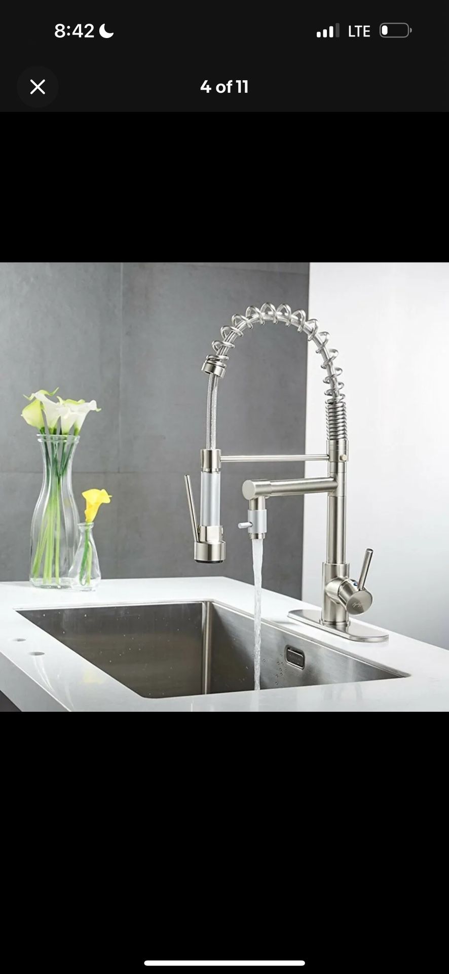 Function: Kitchen Sink Faucet :Swivel Spout Finish: Brushed Nickel Number of Handles: Single Handle Installation Holes: 1 Hole Faucet Total Height: 480 mm Spout Height: 95 mm Valve Type: Ceramic Valve Faucet Body Material: Brass Faucet Spout Material: Brass Faucet Handle Material:Brass With 2 pipes for cold and hot water. The installation hole is 3.5-4.2cm (1.38”-1.65”)