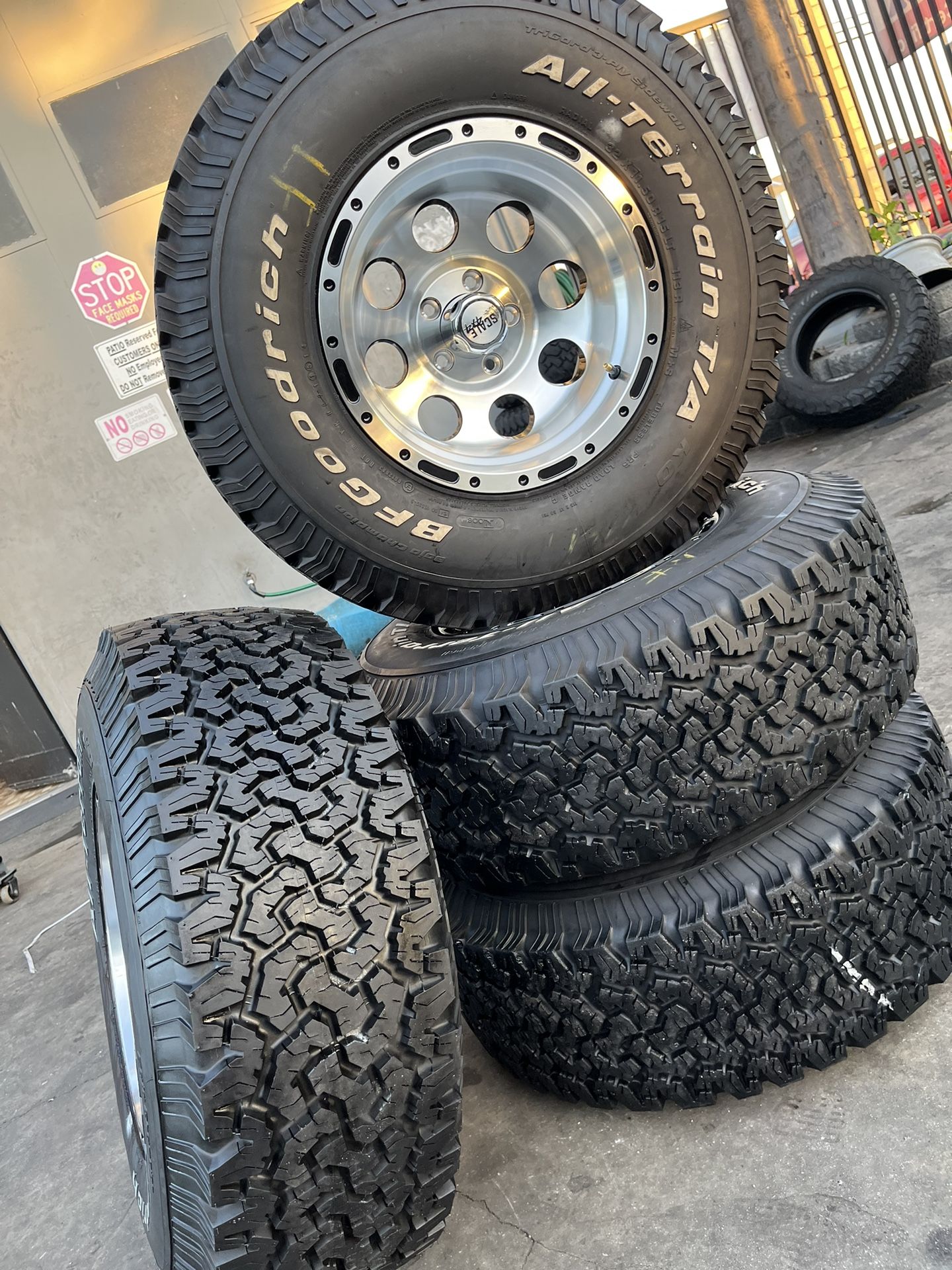 Instacion y BALANGE las 4 llantas rines nuevos 15x10 de 5 virlos con llantas 32/11.50/R15 Bfgoodrich para carros como For Ranguer Tacomas Toyota 22R