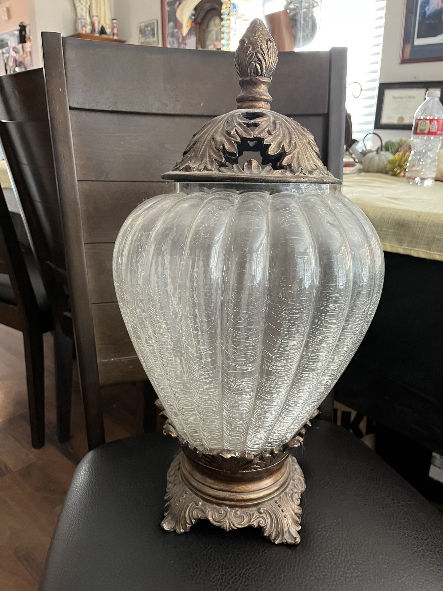 Large decor use for anything you want fancy up a centerpiece or place somewhere in your house to make it look beautiful. Never used.