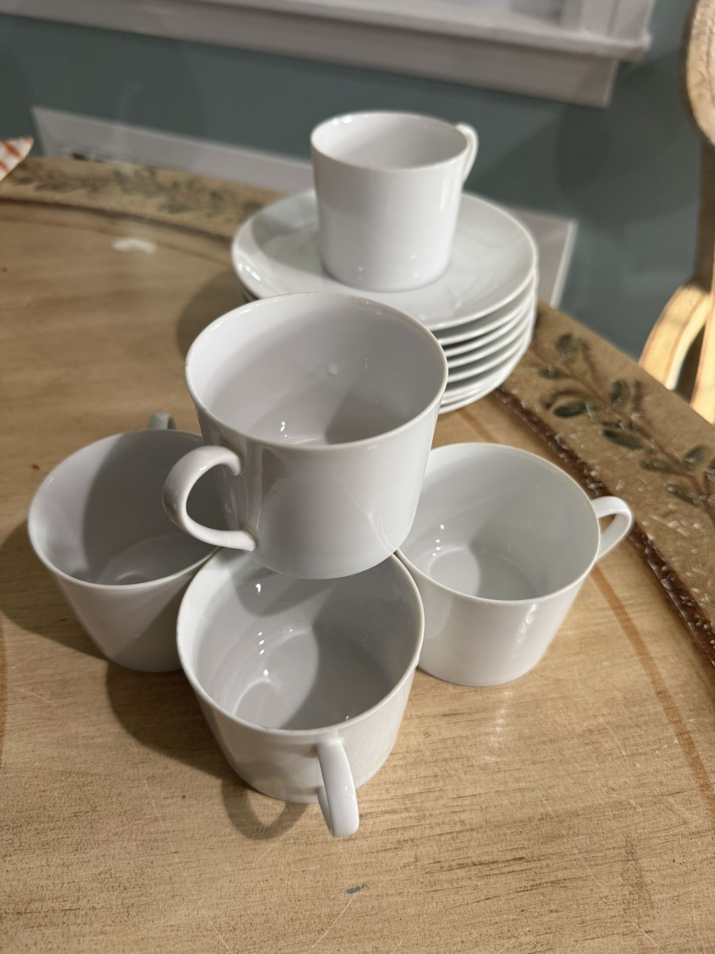 Set of 8 plain white porcelain everyday small plates & 6 bonus small mugs