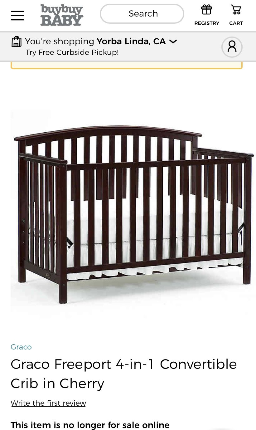 Preowned condition. Shows signs of wear (see pictures) Still has lots of life left. $65 obo Will throw in a free pack of huggies diapers with purchase “Upgrade your nursery with the Graco Freeport 4-in-1 Convertible Crib. With a traditional design, this stylish convertible crib is a cross between simplicity and function, and will complement any nursery's décor. SAFETY REMINDER: Never use soft bedding, such as quilts, stuffed animals, or pillows while your baby is in any sleep environment 80% wood/20% metal Cherry finish Adjustable height Converts from a crib to a toddler bed, daybed, and full-size bed (bedframe and mattress not included) Measures 54-1/2" L x 32" W x 42" H 50 lb. weight capacity when used as crib