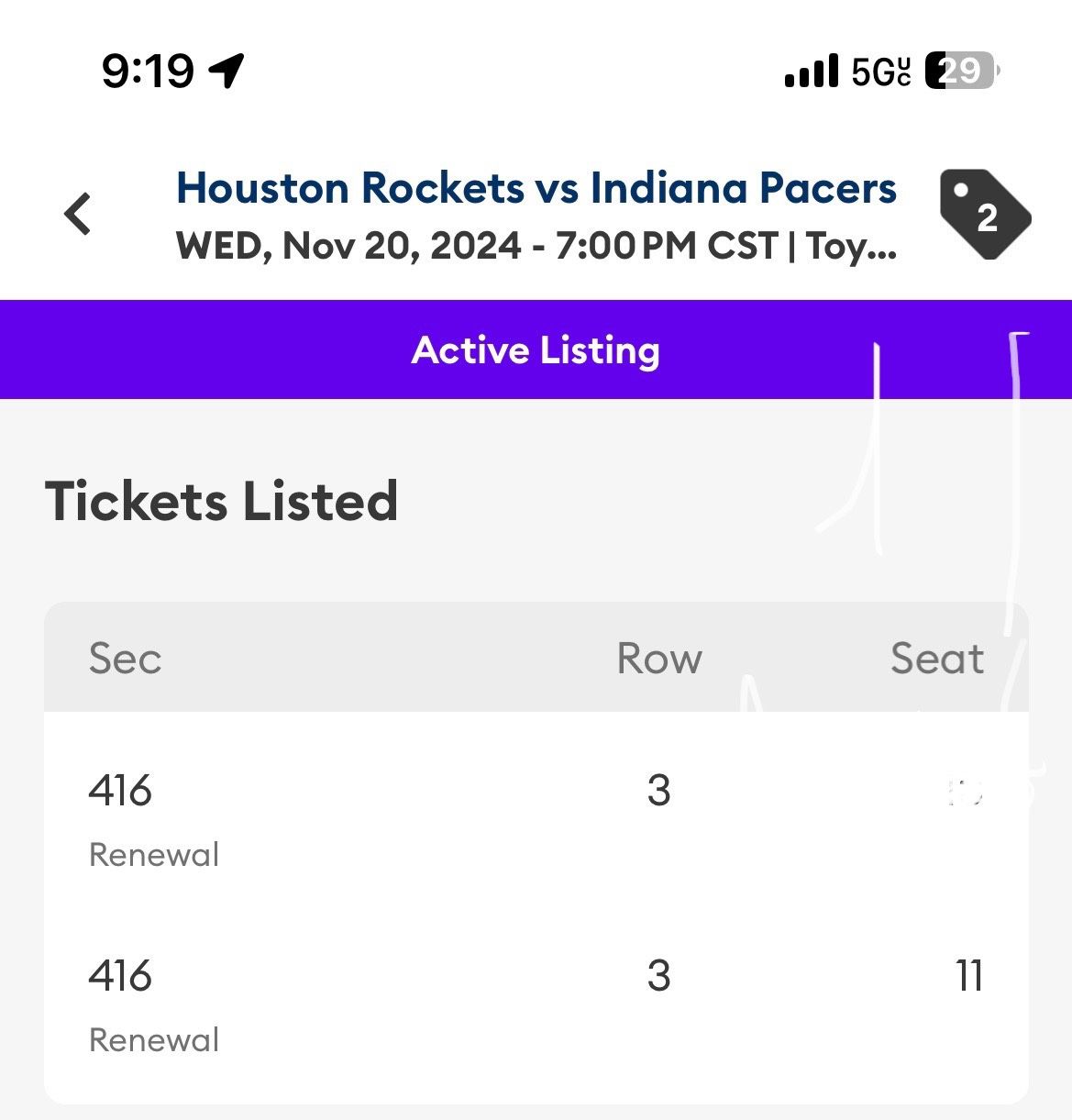 We have two tickets for Wednesday night, November 20, 2024. Asking $23 per ticket. Thank you for looking.