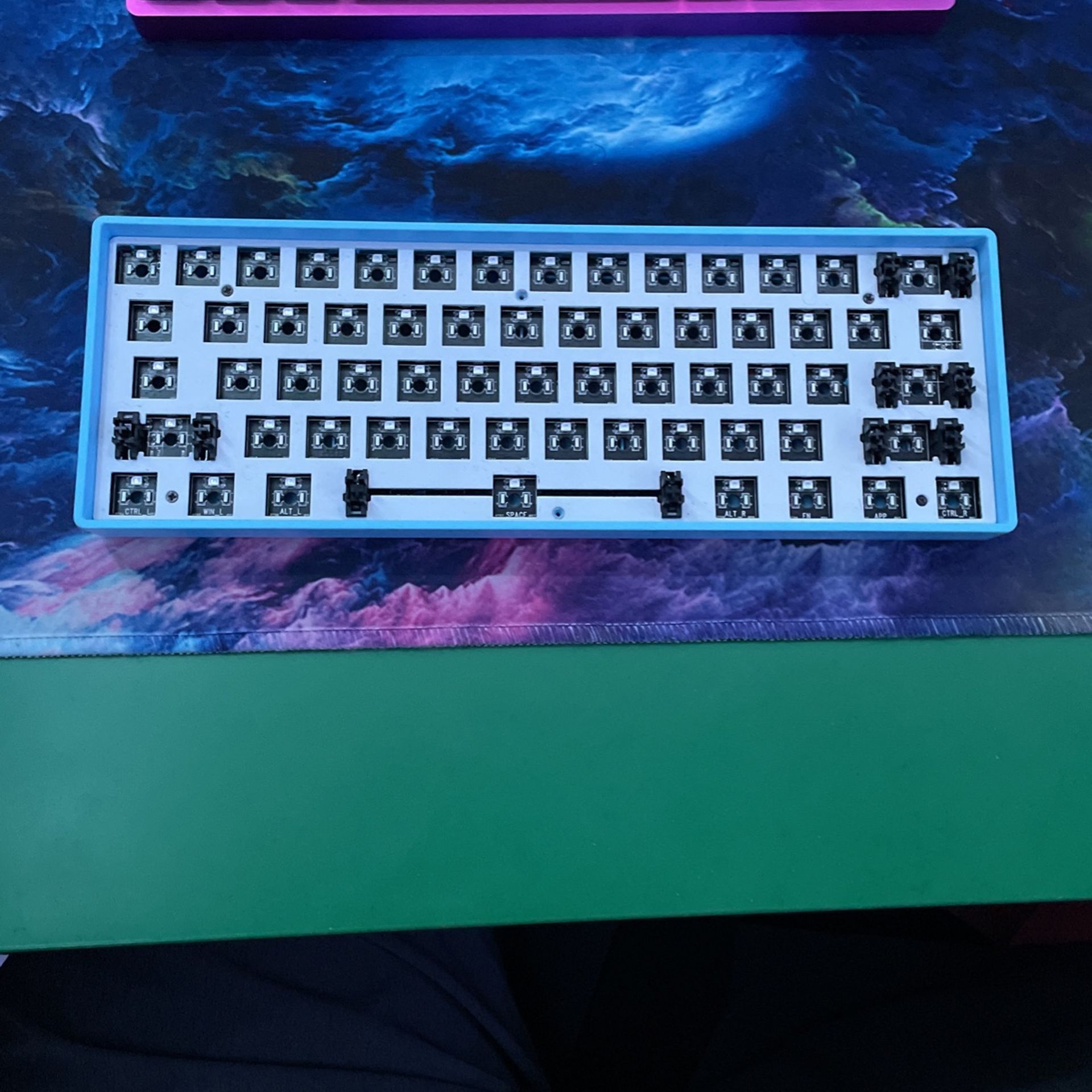 Its a GK61 case with its plate and the the board, the board its broken and needs a usb-c reattach because it fell off if you can sodder it back, i’ll be brand new, i have yellow switches too that came with it for 30 bucks more if you are looking for switches, i liked them a lot. also the case plate and board comes with new stabilizers i bought.