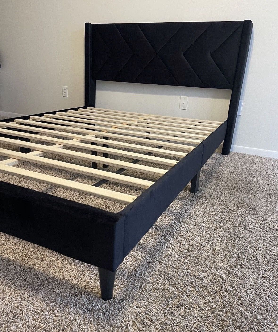 (NEW IN BOX) King Size platform Black Fabric Bed Frame
