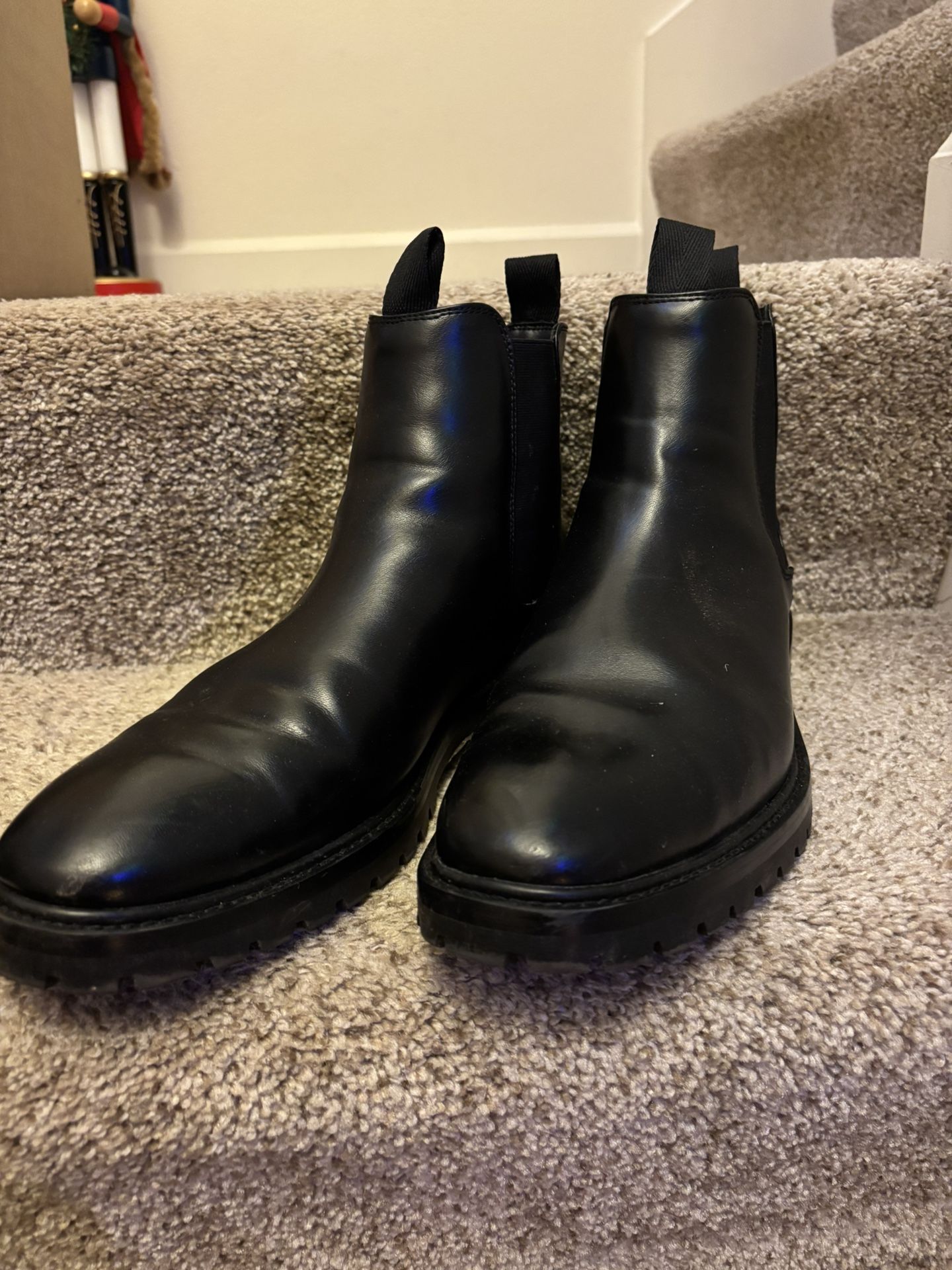 Men’s black H&M boots in good condition. Stylish and versatile with light signs of wear. Comfortable fit and perfect for everyday wear, work, or casual outings. Clean and ready to wear. $20 OBO! Public meetup location in Lake Stevens.