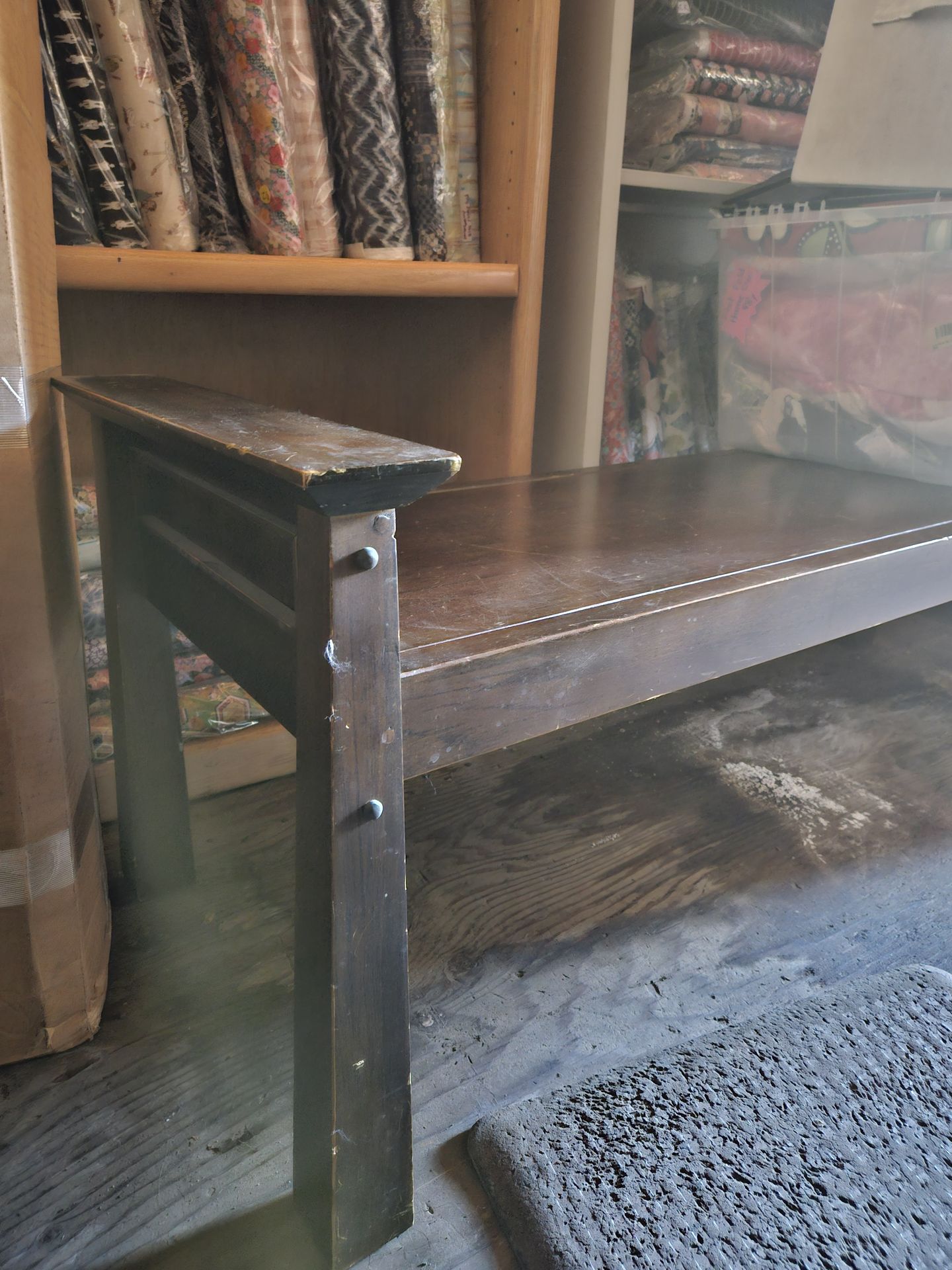 Wood bench. 54"across. Arms 20"high. Seat 16"high x 17.5" deep. Pickup at a1 storage 3040 oceanside blvd. If this listing is up thr bench is available. Please message with when you want to see the bench. Thank you