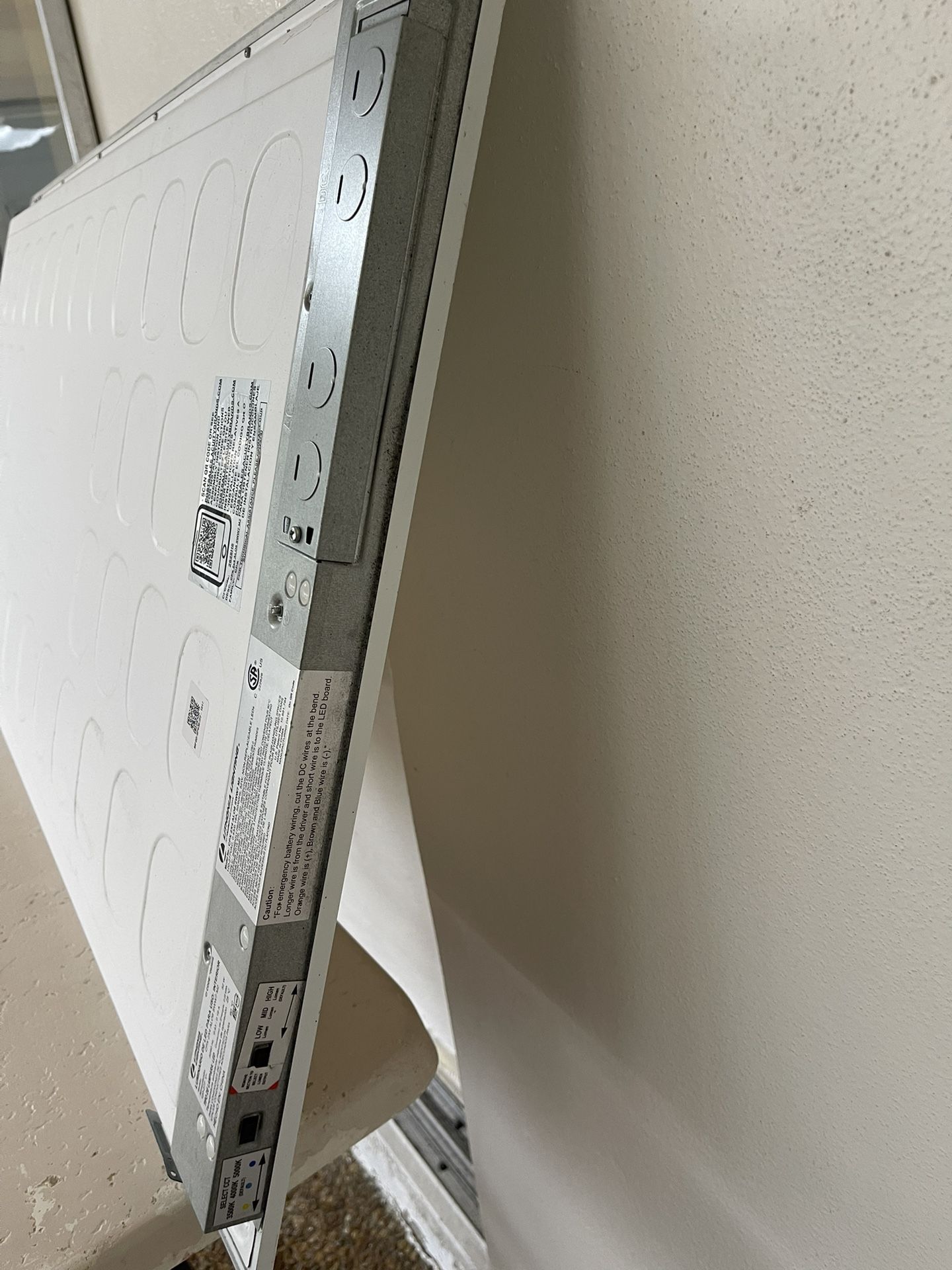 High-quality Lithonia Lighting 2x4 ft LED flat panel light. Ideal for offices, workshops, or garages. Energy-efficient design provides bright, even lighting with a slim, modern profile. Works with standard drop ceiling systems. Excellent condition — ready to install.