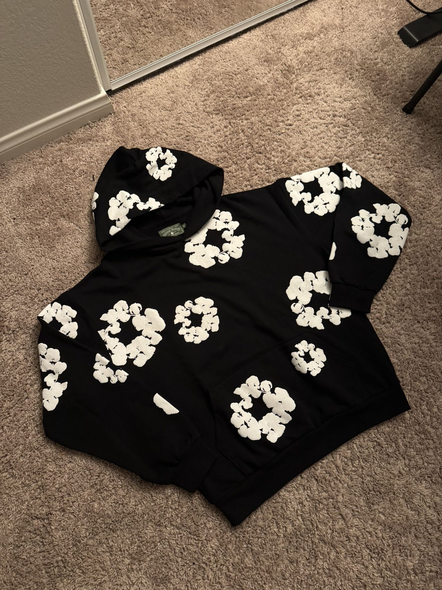Denim tear black and white Comes with bag but it’s ripped Size xl Authentic✅ Brand new never worn