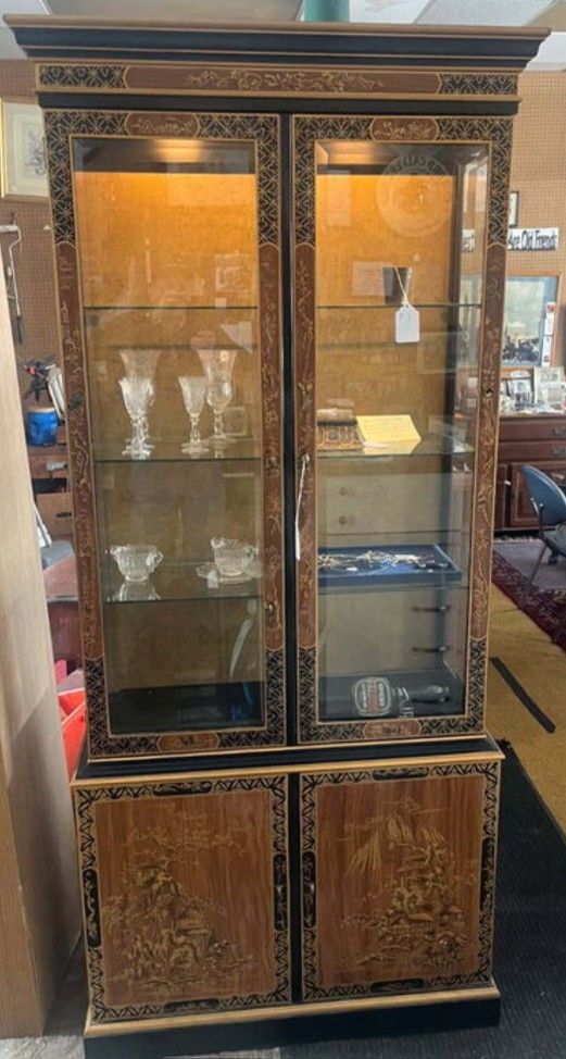 Oriental black lacquer & gold China closet w/ lighted back - In real good shape $750 obo