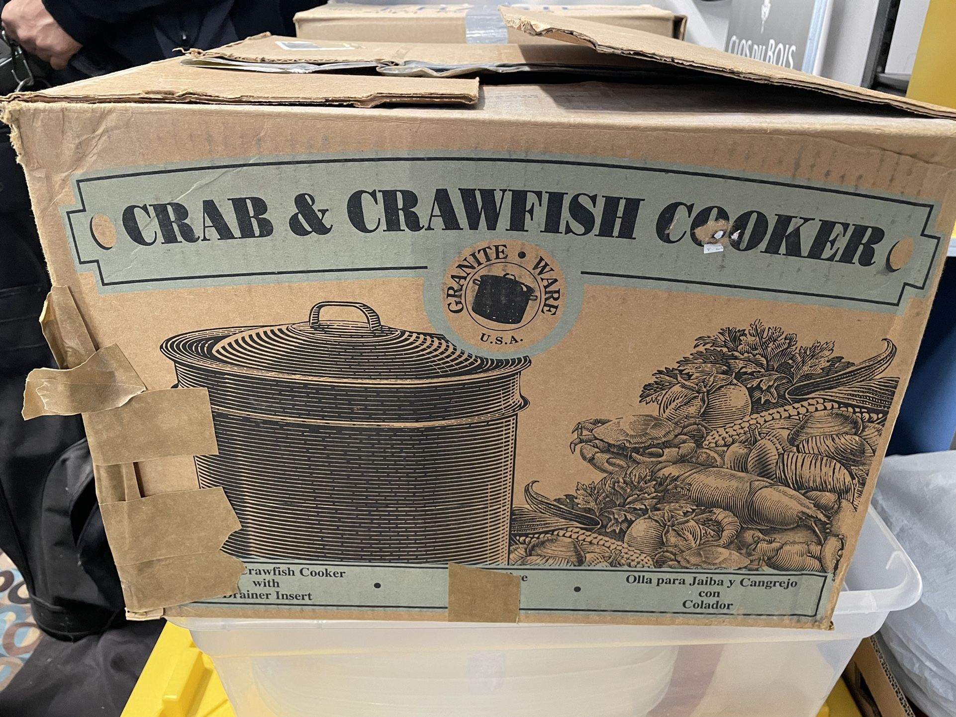 Large crawfish and crab cooker that also includes a strainer. Only used a few times.