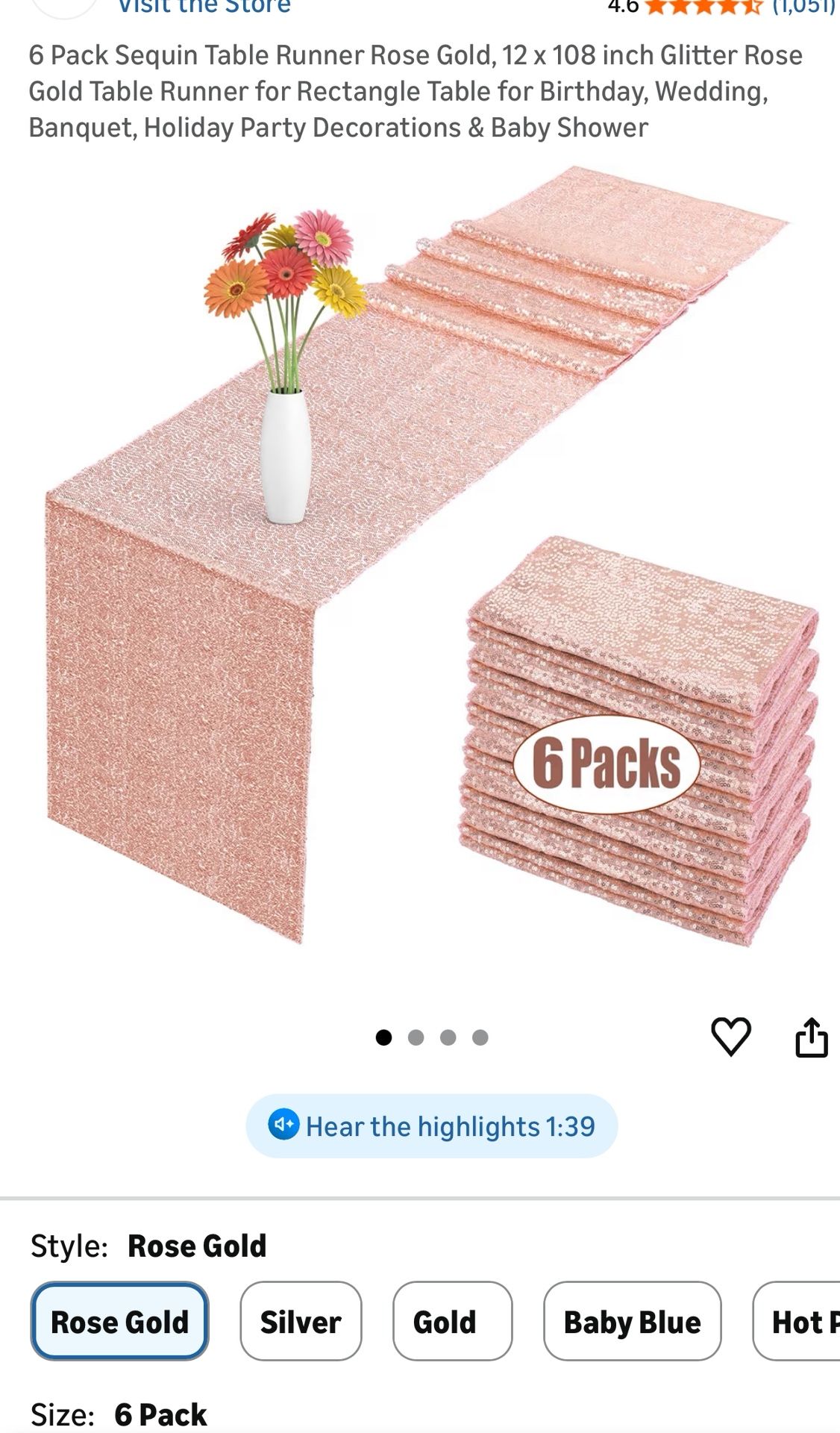 Table Runner Rose Gold New