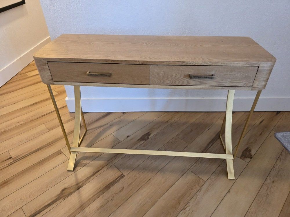We used this as an entry table near the front door. Great place to store keys, wallets, etc., in the drawers. Dimensions: 42" L 14.5" W 29.5" H