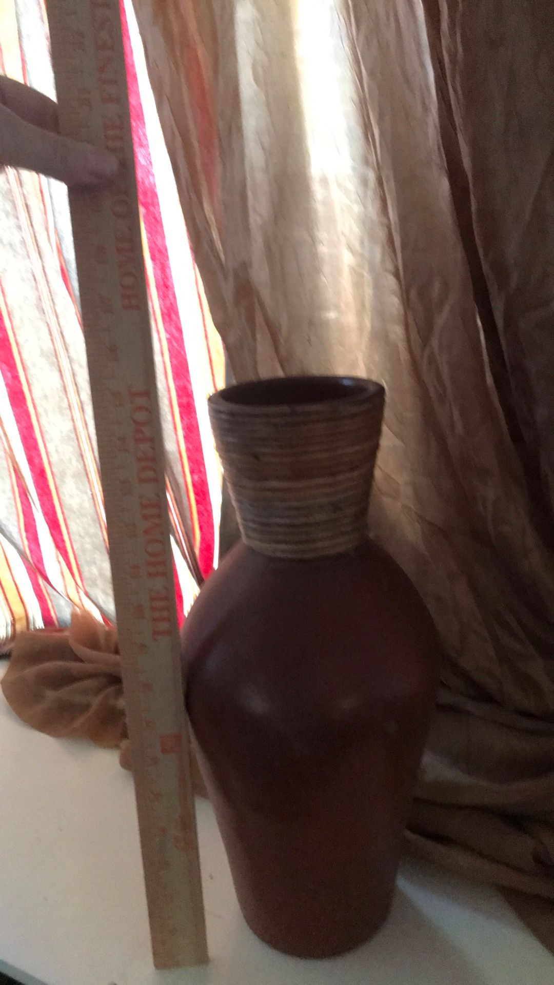 Decorative vase. Opening is 4”. Neck is a little over 3”. Height is 15”.