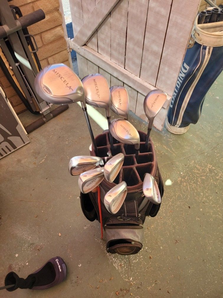 Almost perfect condition. Great set. Ultralite graphite ladies flex shafts. Only negative is driver has a small dent. Does not affect use. Check it out. Hmu. Sw Pw 9i-7i 6hybrid - 4hybrid 3wood 1driver Putter