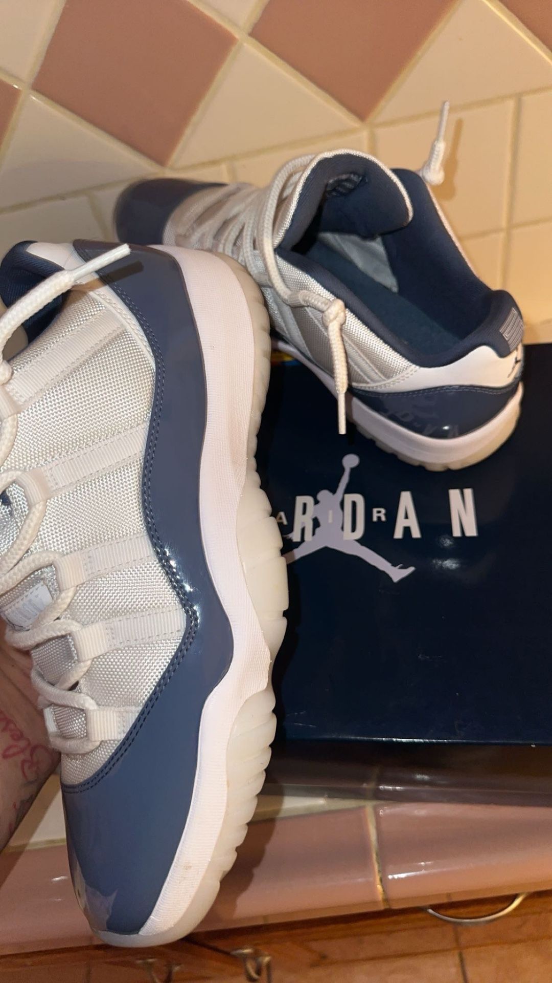 Size 11.5 white grey navy blue 9.5/10 condition used once Asking 190$ Serious inquires only